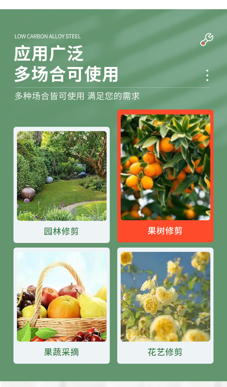 台湾好园丁园艺摘果剪刀 果树蔬果剪修枝剪 镀铬铁柄稀果剪园林剪 1把