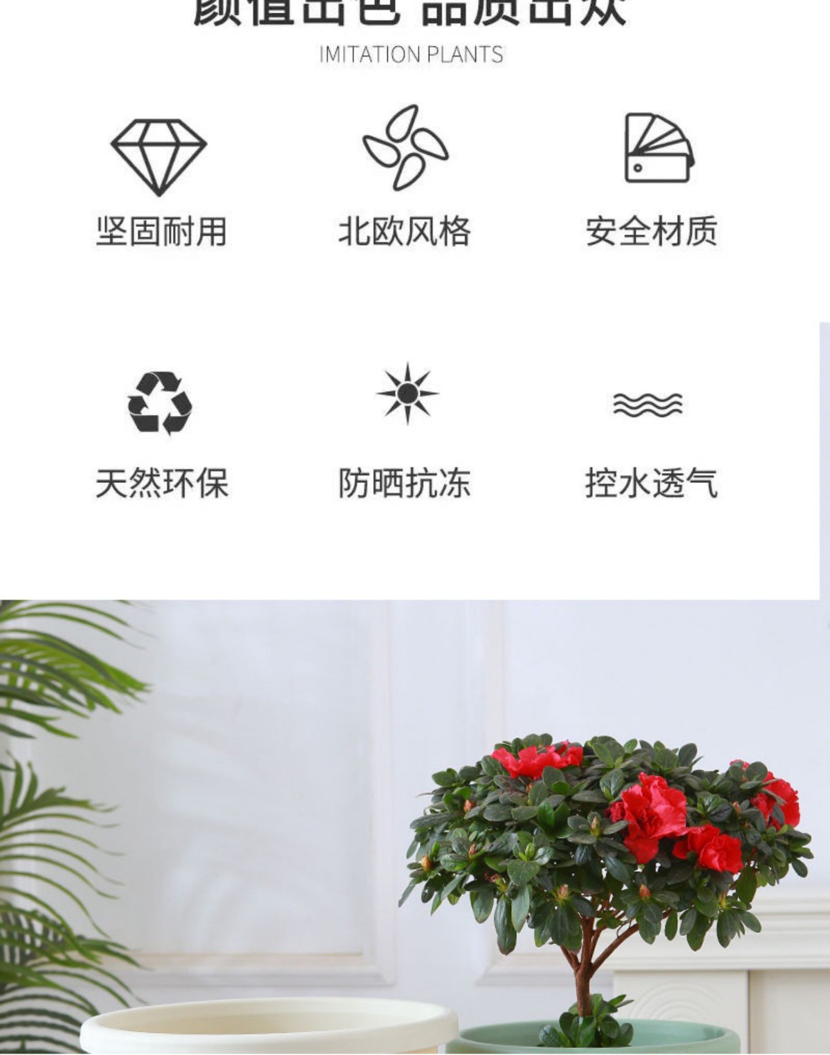 环保耐用塑料北欧家用树脂花盆花卉绿植大号庭院室内室外陶瓷花盆 1件