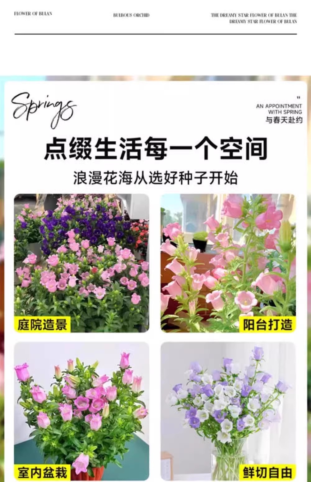 风铃草花种籽子四季播种开花杯状铃铛喇叭花种子阳台易活风铃草籽 1件