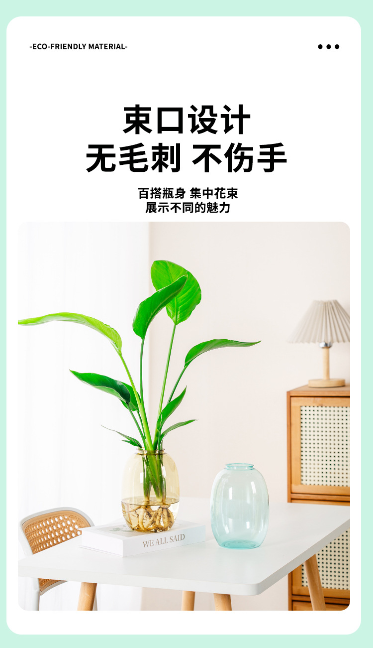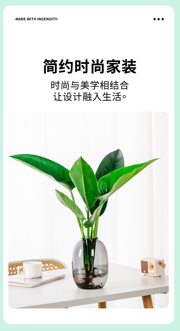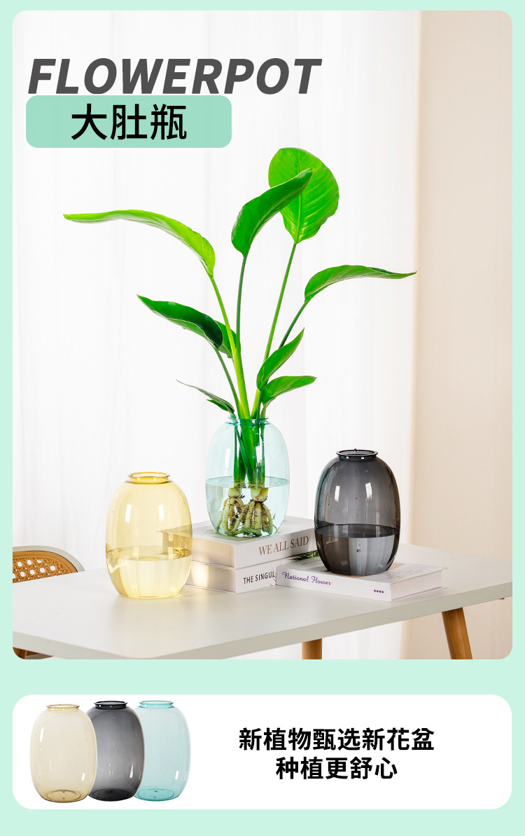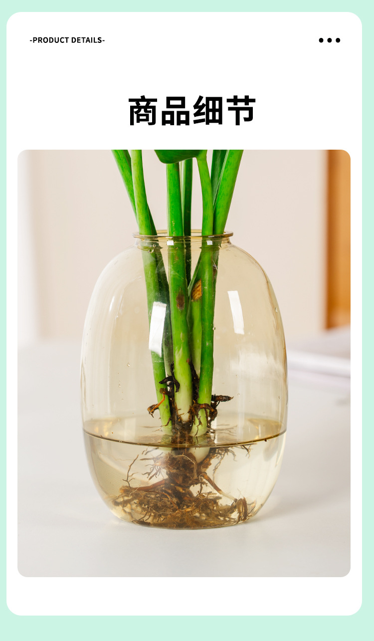 创意透明水培水养植物花盆绿萝铜钱草仿玻璃花瓶塑料树脂摆件批发 1个