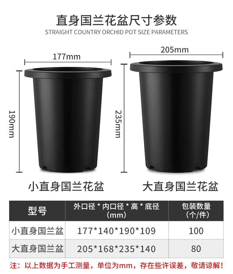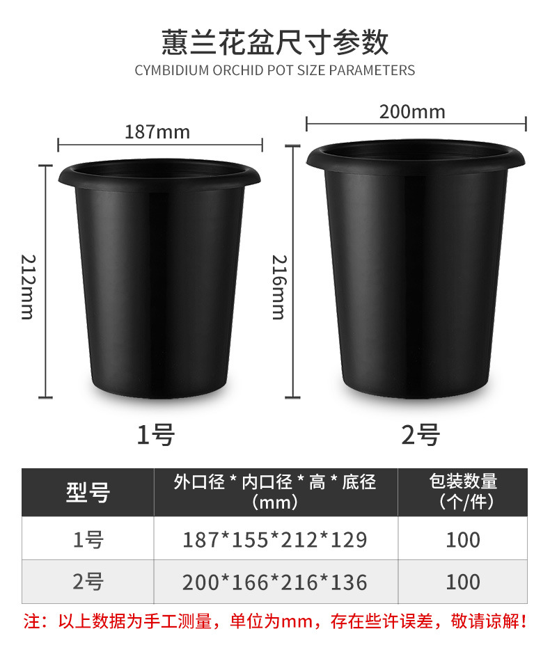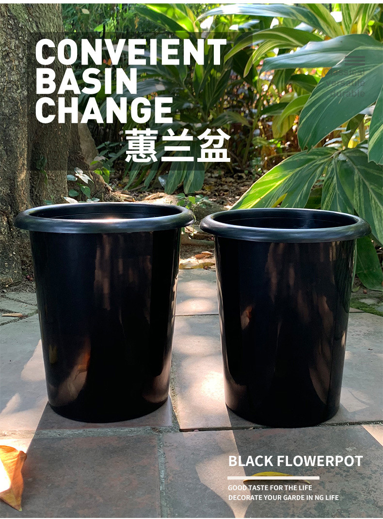 恒德利君子兰花盆国兰蕙兰兰花盆高筒款花盆黑色加厚塑料花盆批发 1个
