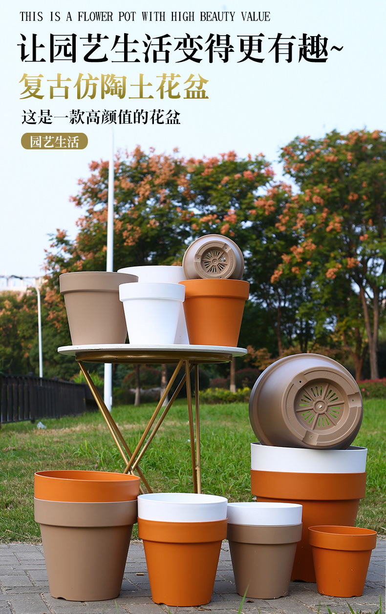 帝罗马仿陶瓷加仑盆加厚树脂塑料花盆家用轻奢高级感新款仿陶土盆 1个