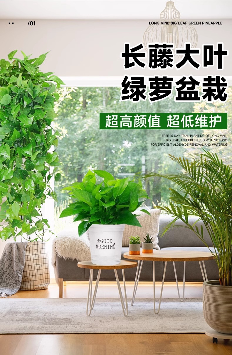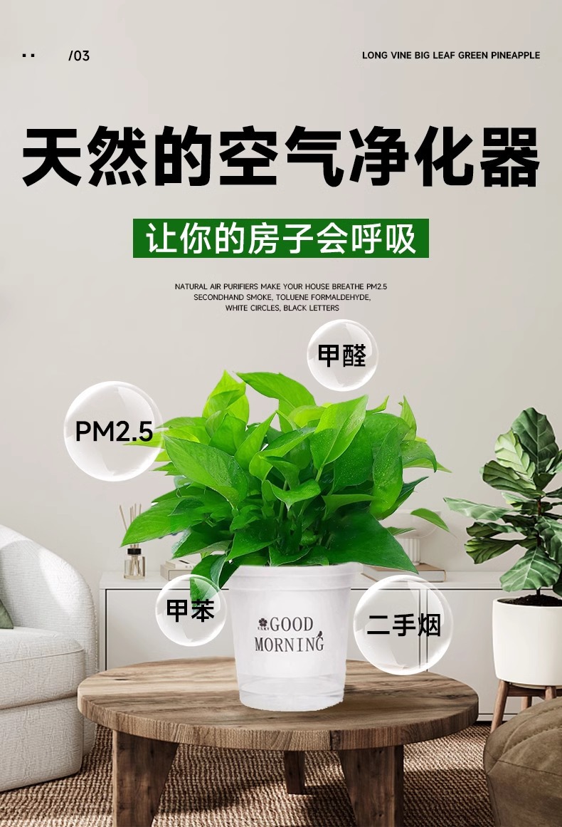 首页 >> 热门产品 >>绿植盆景 >>绿萝 >> 绿萝盆栽植物爬藤绿箩办公室内净化空气新房吸甲醛长藤款水培绿植 1件
