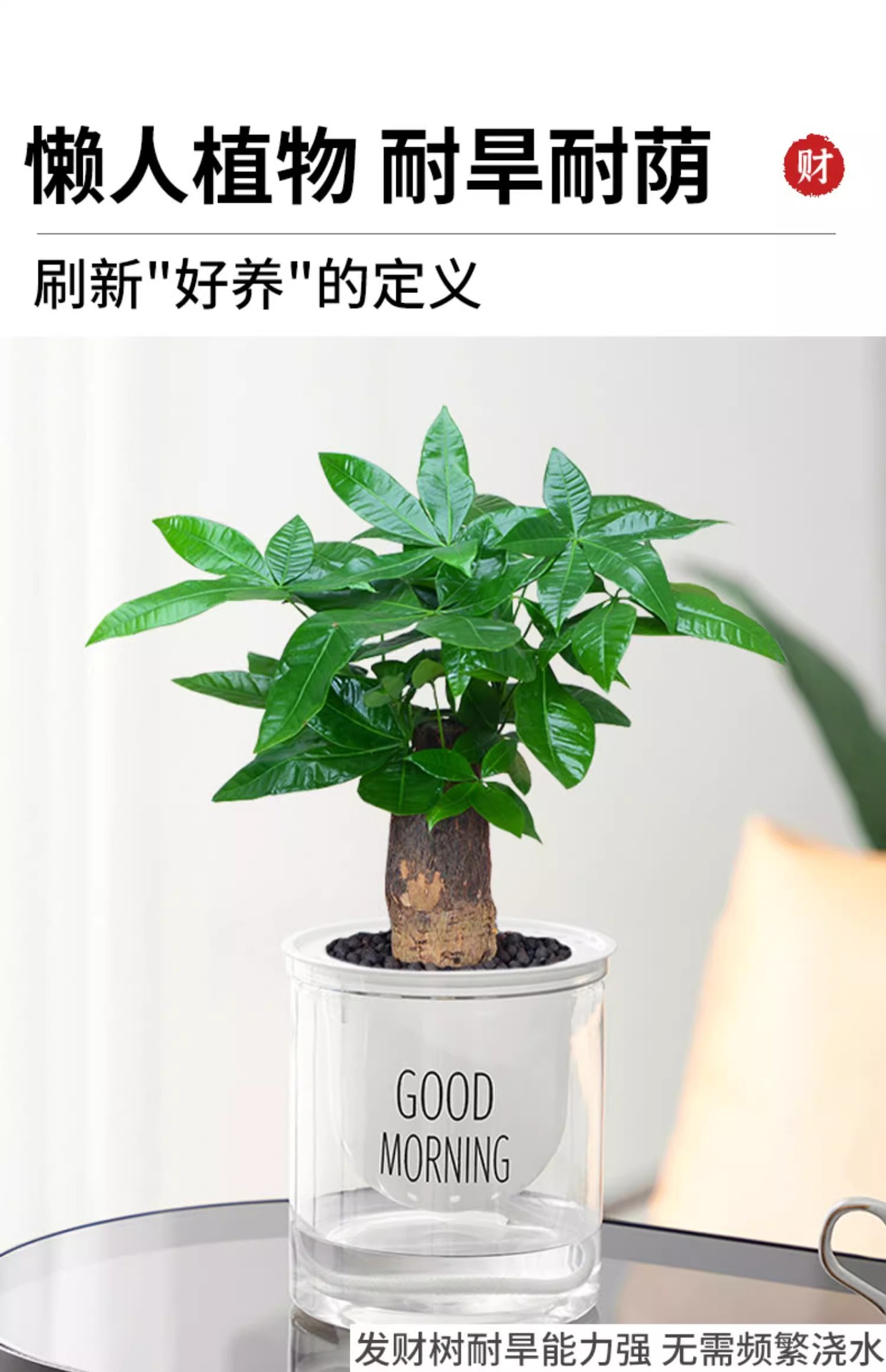 水培发财树小盆栽植物办公室内三杆原生招财好养盆景花卉绿植摆件 1件
