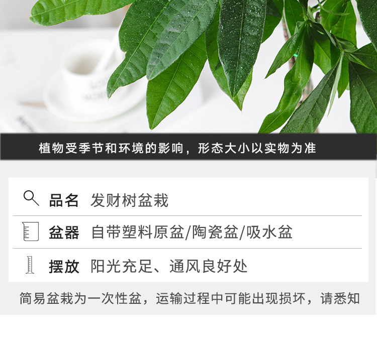 五编发财树盆栽苗辫子桩室内客厅桌面观叶植物净化空气吸甲醛耐旱 1盆