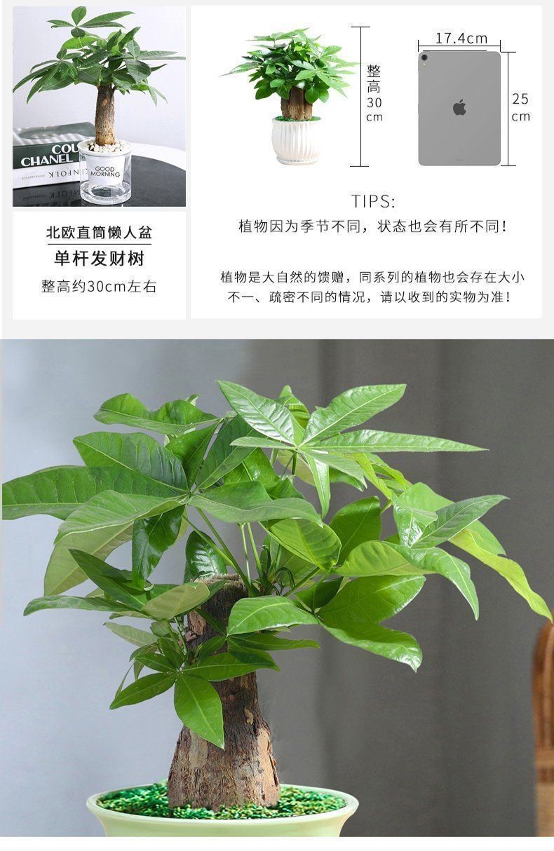 发财树招财树盆栽独杆懒人绿植桌面树苗净化空气室内绿植花卉客厅 1件