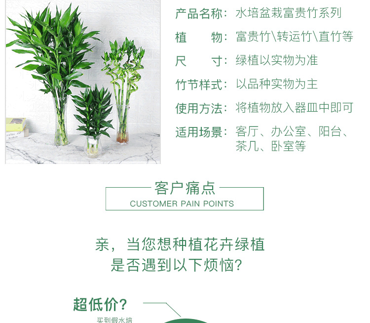 首页 >> 热门产品 >>绿植盆景 >>富贵竹 >> 富贵竹水培植物盆栽花卉绿植室内花客厅水养绿萝大叶转运竹节节高 5支