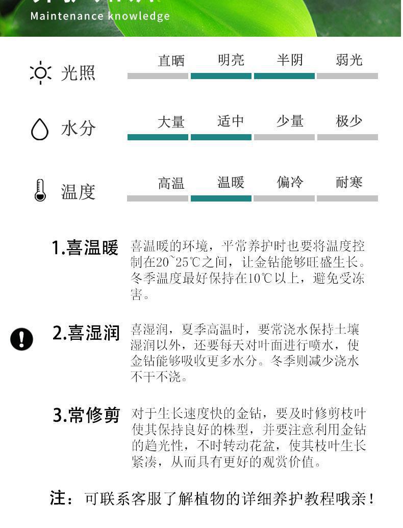金钻盆栽绿植绿萝箩水培植物万年青发财树室内花卉办公室客厅好养 1件