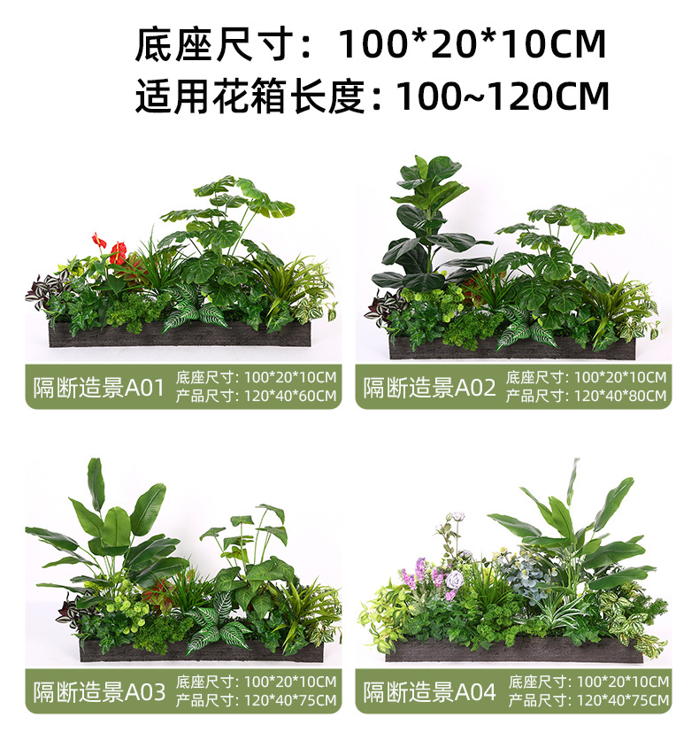 仿真绿植景观隔断造景组合摆件室内花槽花箱装饰假植物仿真花摆设 2个