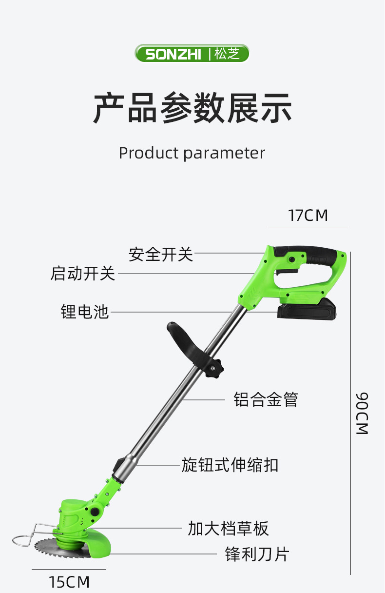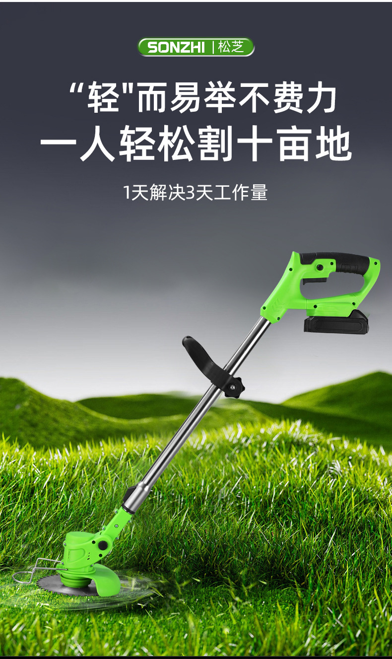 跨境锂电割草机小型多功能家用除草机手持充电无线打草机园林工具 10个