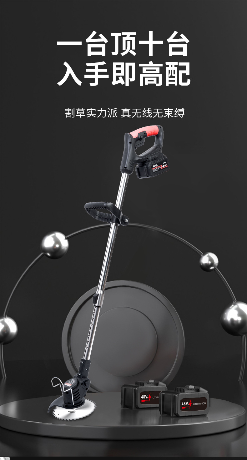 新款电动割草机小型家用除草机锂电充电式打草机大功率除锄草神器 1个