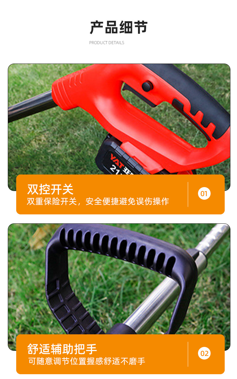 跨境锂电割草机小型家用手持除草机电动多功能便携充电式打草机 1台