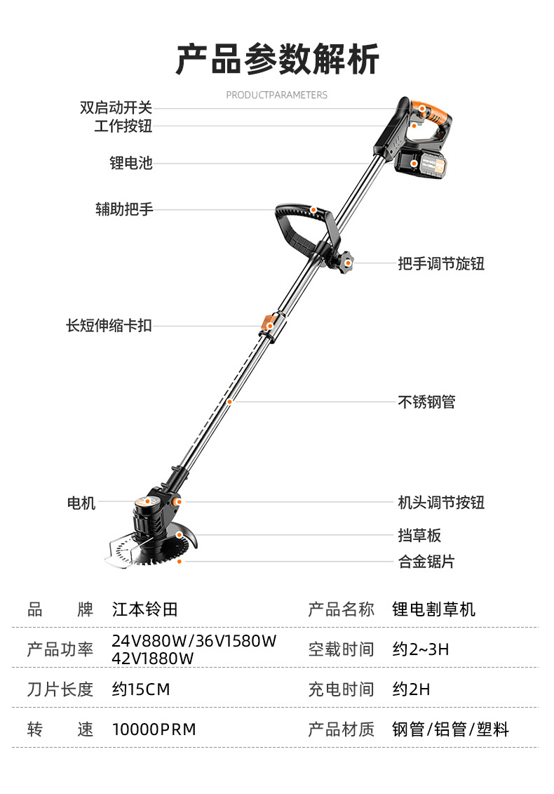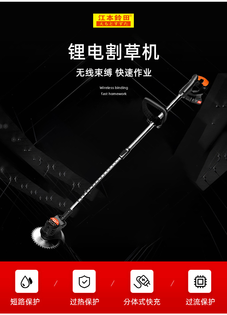 跨境电动割草机小型家用锂电充电式打草机大功率草坪锄除草除草机 1个