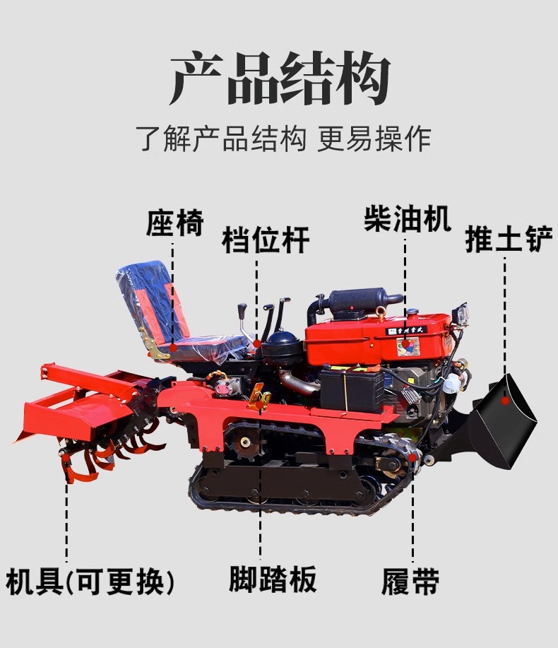 家用开沟小型履带式旋耕机微耕机山区耕地机农用柴油农机犁地耕田 1台