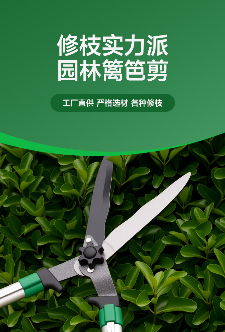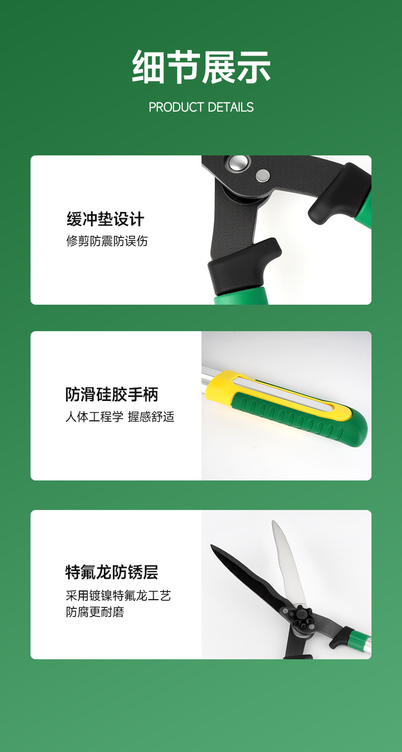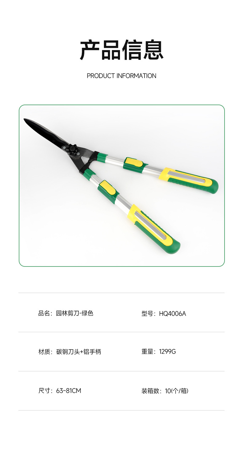 园林剪刀绿色篱笆修枝剪碳钢刀头铝手柄大号园艺剪修枝剪果树剪 2把