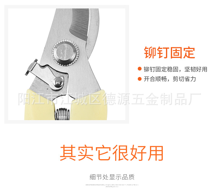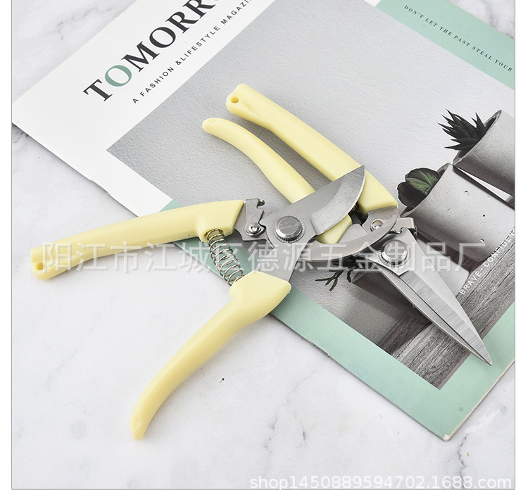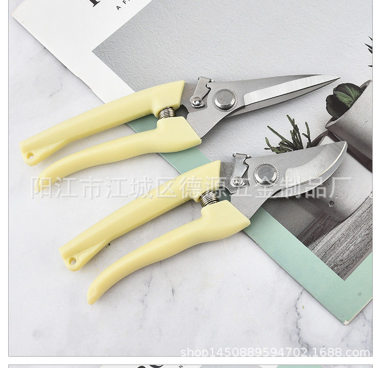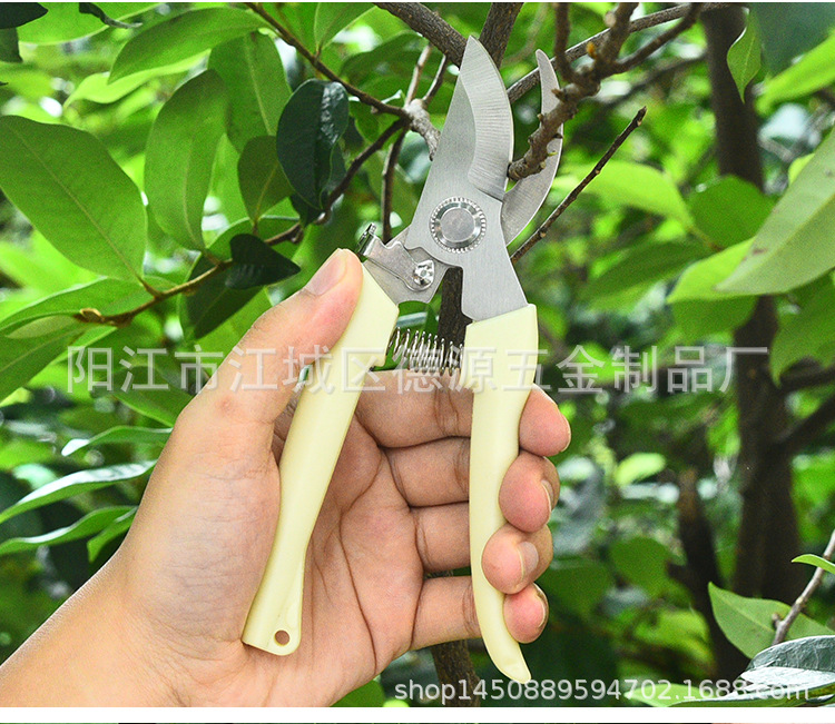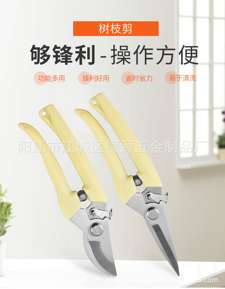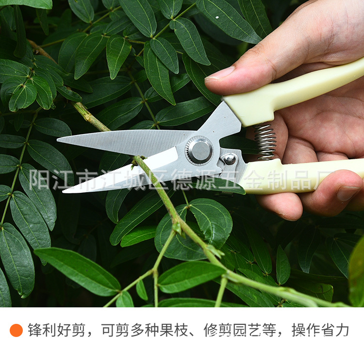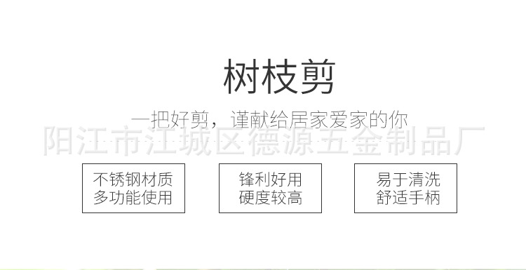 商品描述 【名 称】DY-H3014修枝剪刀 【规 格】H3014(直口):总长约:17.5cm,宽4.3cm,厚2.5mm,重量:约83G, H3014(弯口):总长约:19.5cm,宽4.3cm,厚2.5mm,重量:约87G, 【材 料】不锈钢3cr13 手柄:PP. 【颜 色 】白色. 【用 途】剪小树枝、修花枝、修叶径、等(剪枝径直径0.1-5mm以下). 【包 装】简装(默认包装),可订制插卡. 【注意事项】 1.不宜剪切硬物及强行剪切 2.接触酸碱盐类物质后应及时清洗擦干 3.剪柄切勿靠近高温 【 温馨提示】 1.本厂的产品部分有现货(现货产品的质量、工艺、包装等以实样为准)价格是按出厂价批发,不含税价不含运费;如大件货需发快运或物流请与客服联系(运费要看具体地方,具体重量或体积不同而再报价),小包裹系统默认是中通快递; 2.买家在拍下商品之前,请咨询好交货的时间、价格、颜色,工艺等产品相关资料后,再提交订单; 3.订制的商品是按客户的样品规格、颜色、工艺、包装生产,如非质量问题不可退货,还望谅解; 4.本厂部分产品是现货,买家付款如是现货产品可在3天内发货,因特殊原因延期发货会另通知客户;如是订制的产品或订制包装请与业务人员协商好拍下订单,谢谢理解与支持!