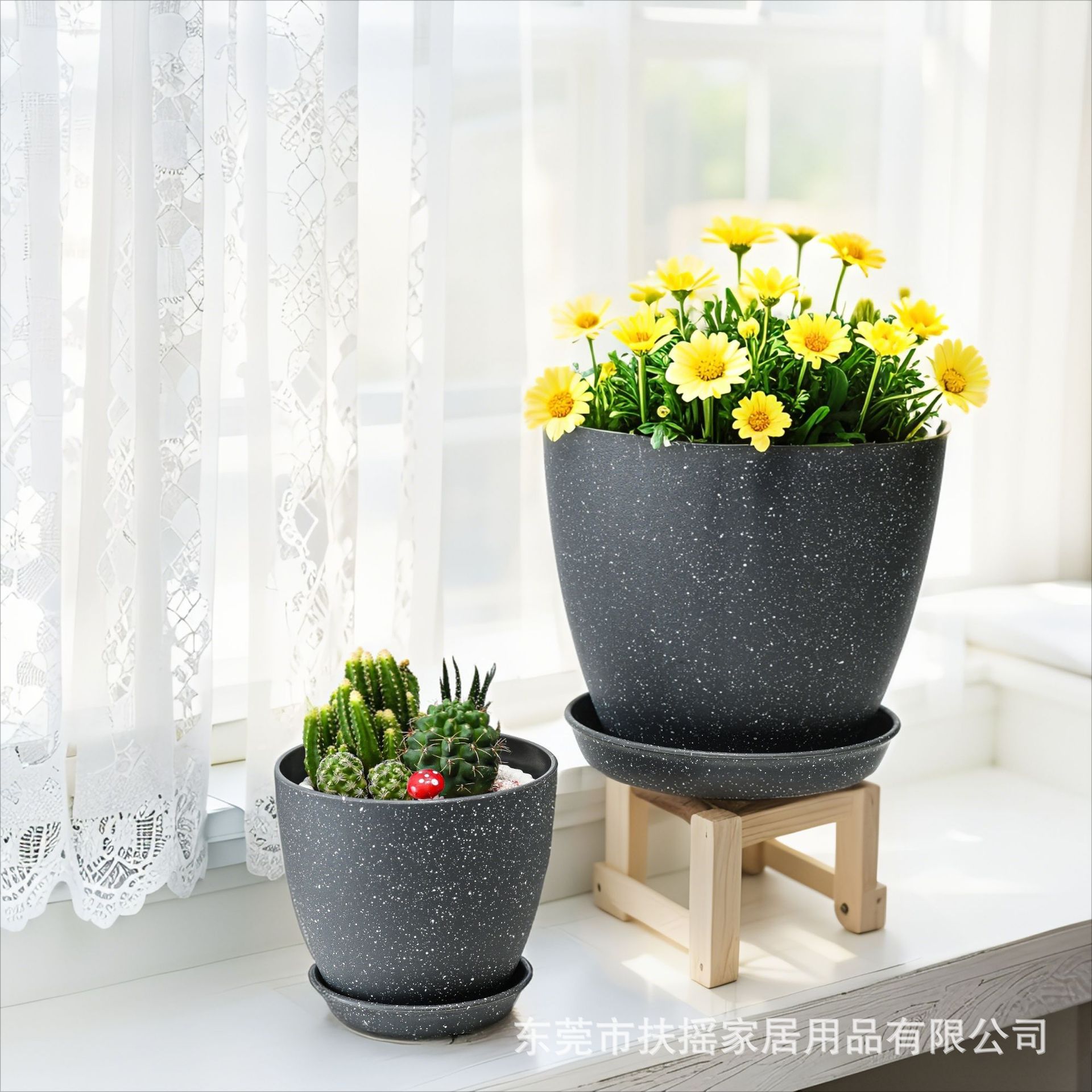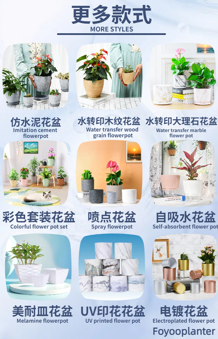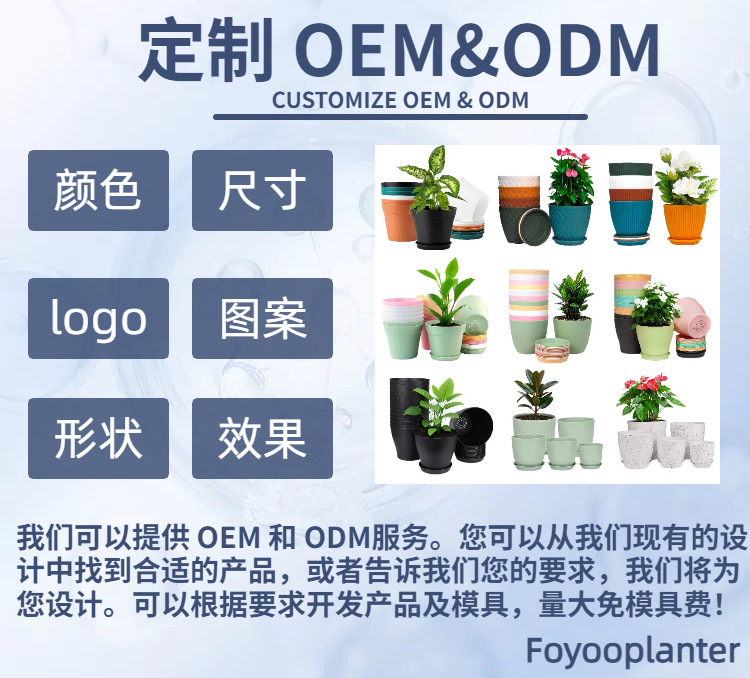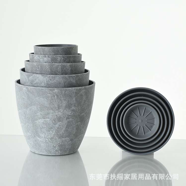 亚马逊爆款现货4in/6inPP水波纹加厚花盆含托盘套装8色自由搭配 2套