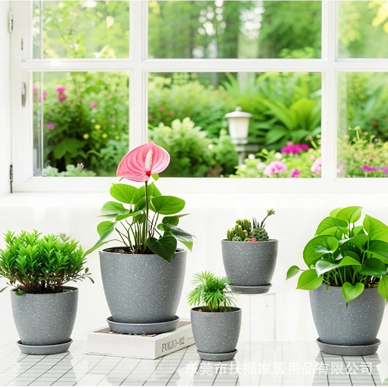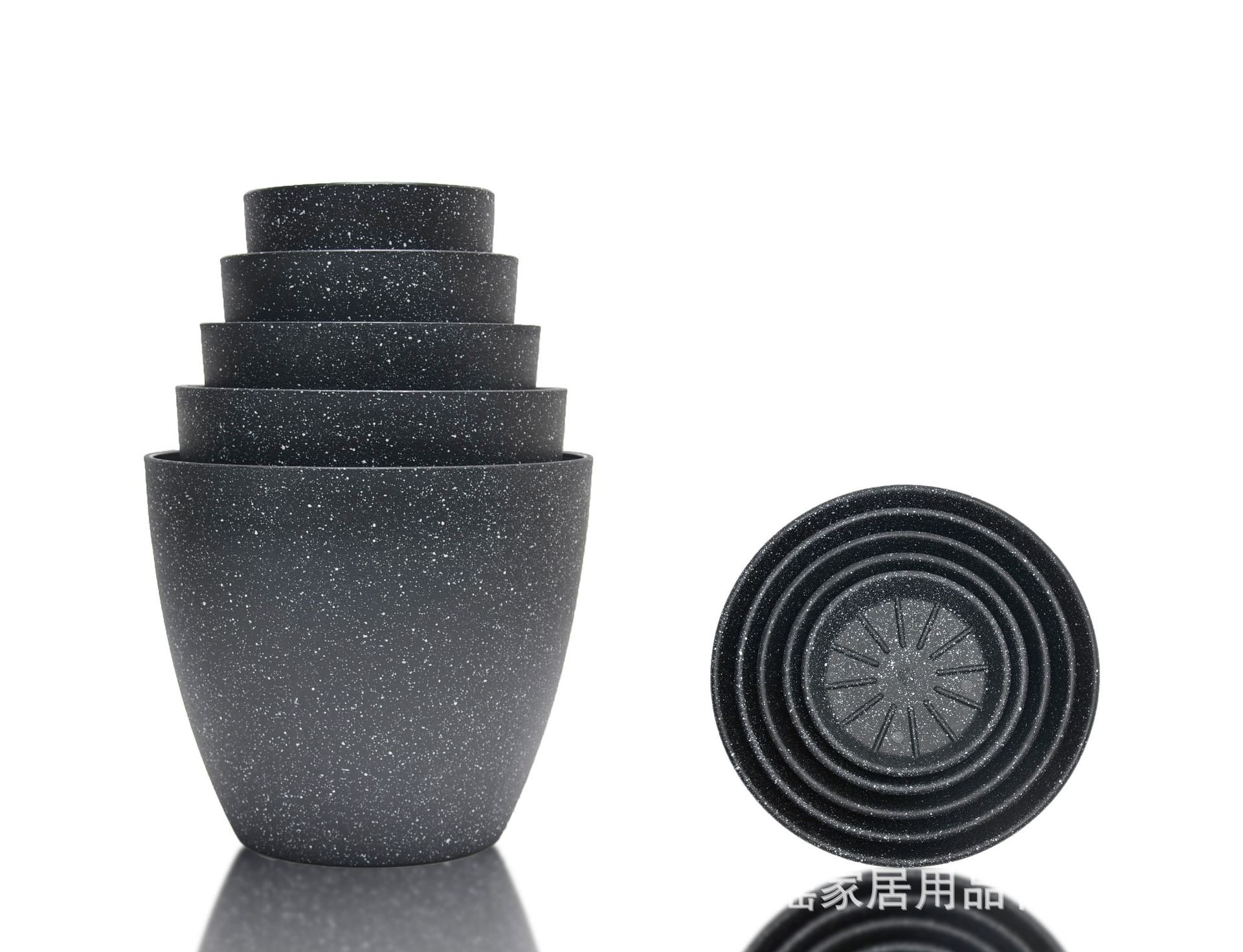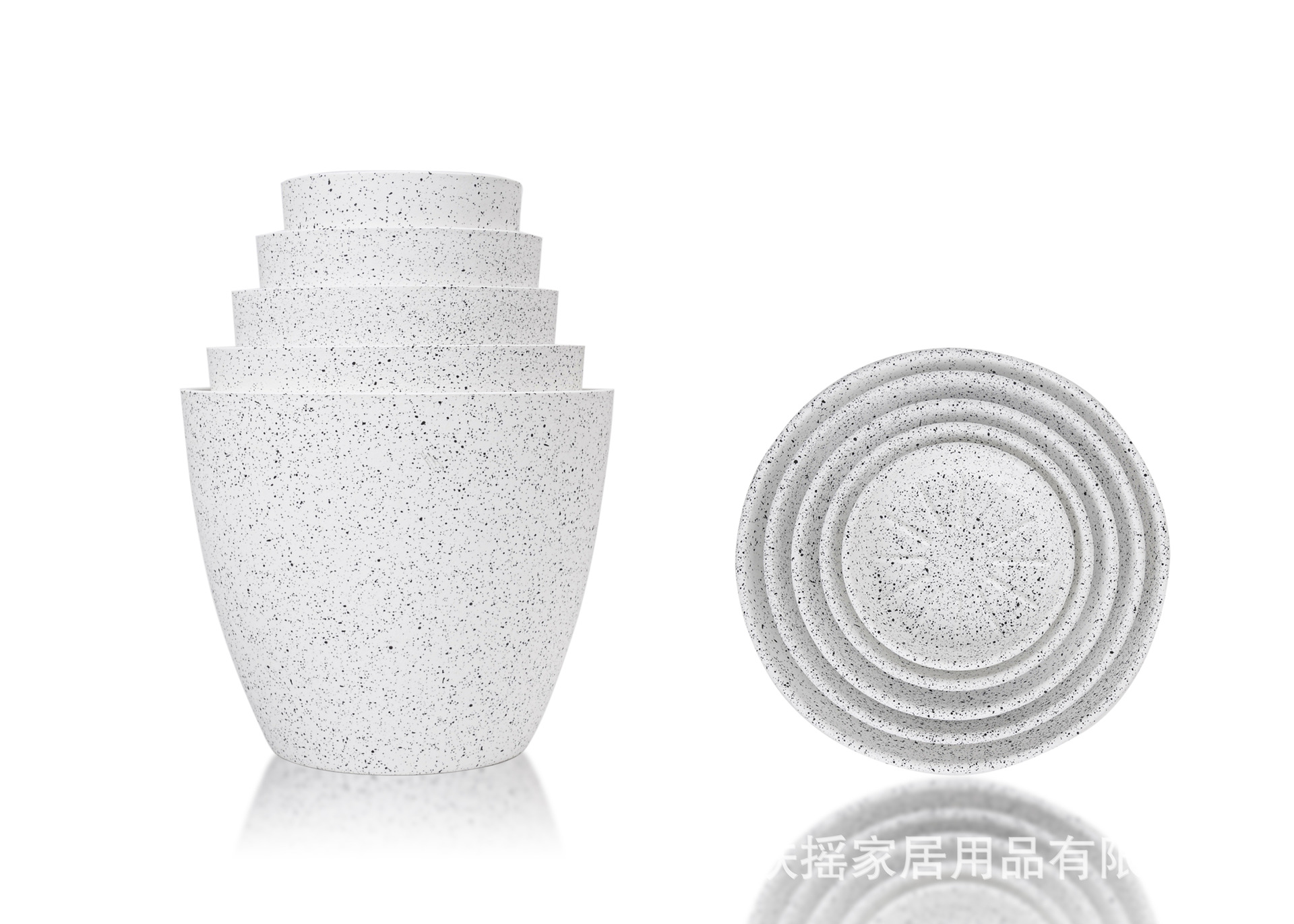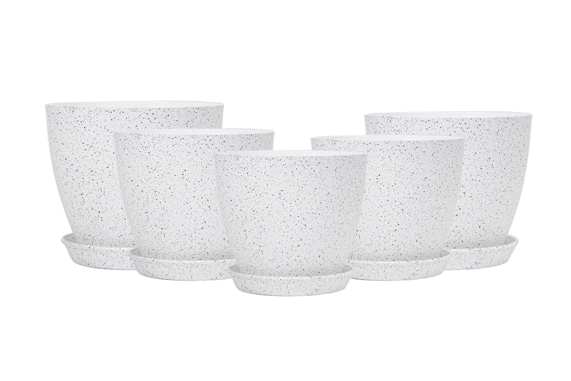 白色喷点效果宽口窄底多尺寸塑料多色花盆可堆叠含托盘室内外通用 1000个