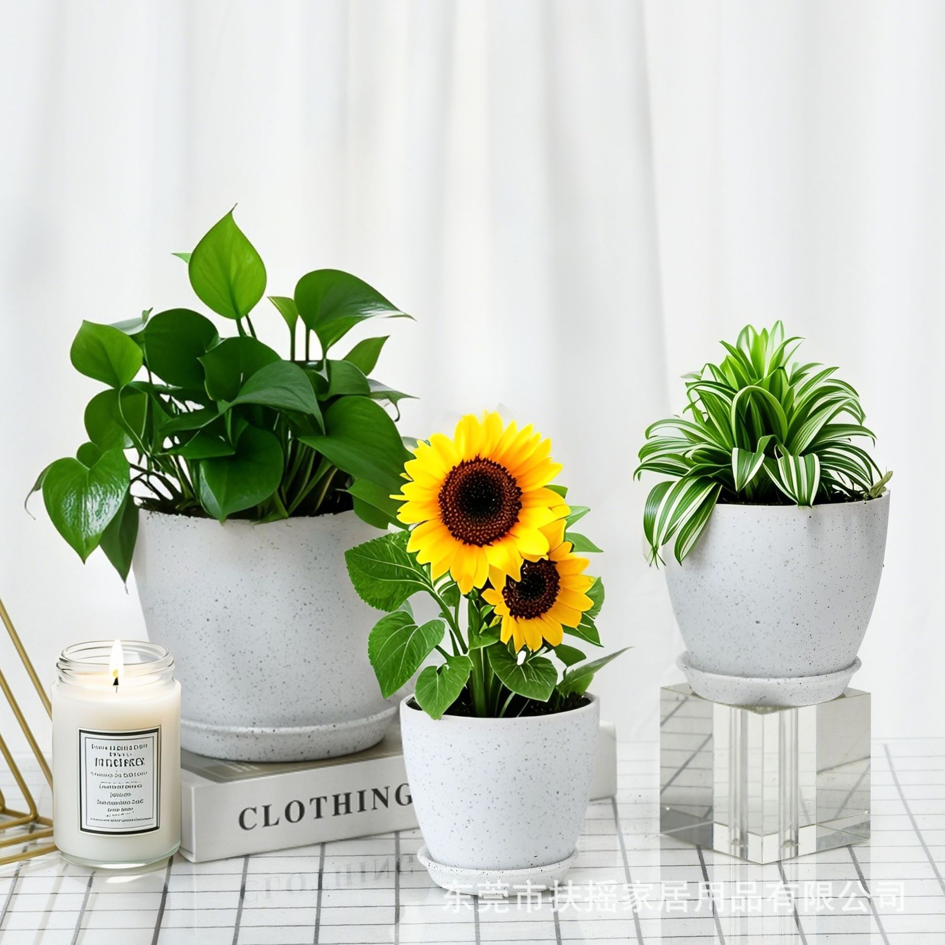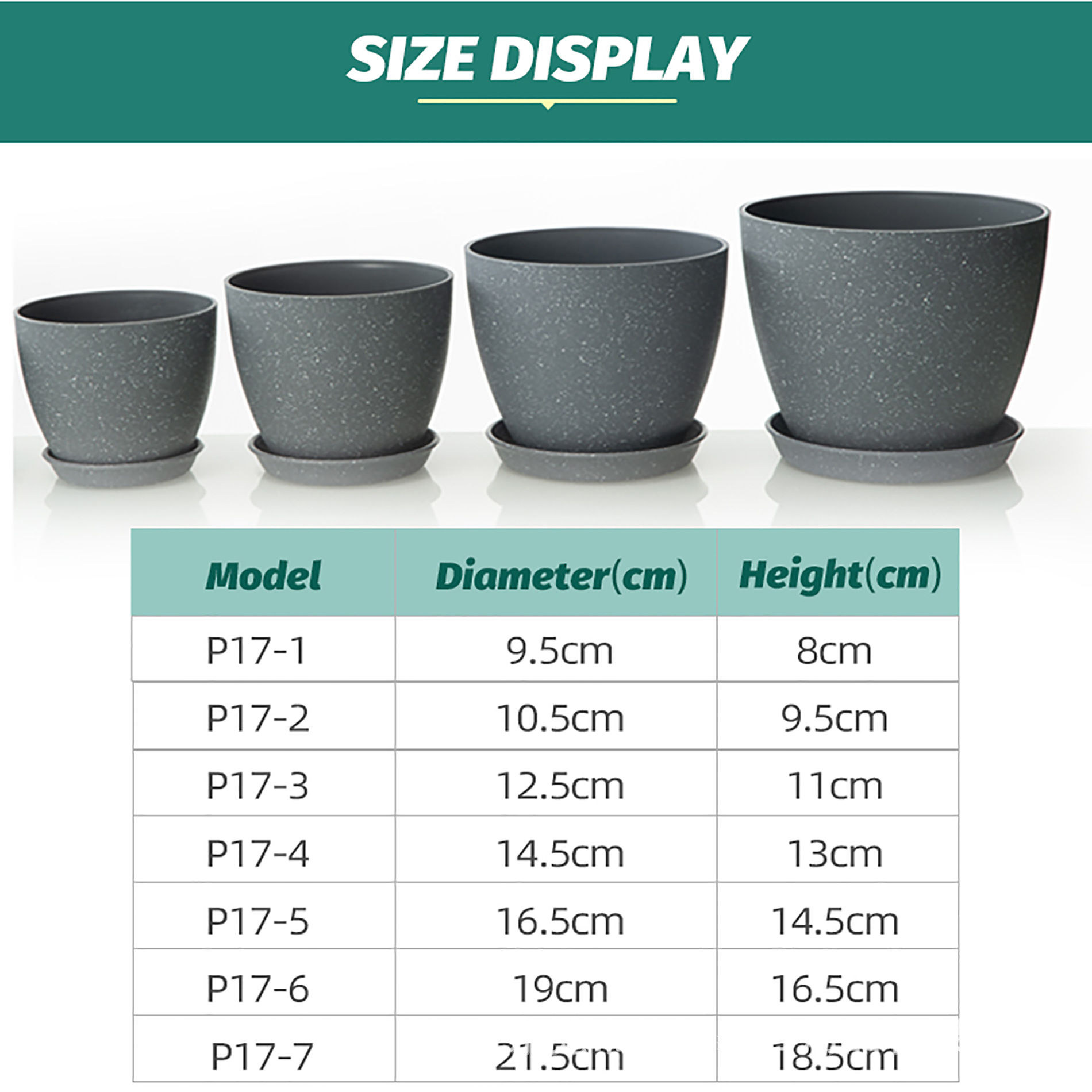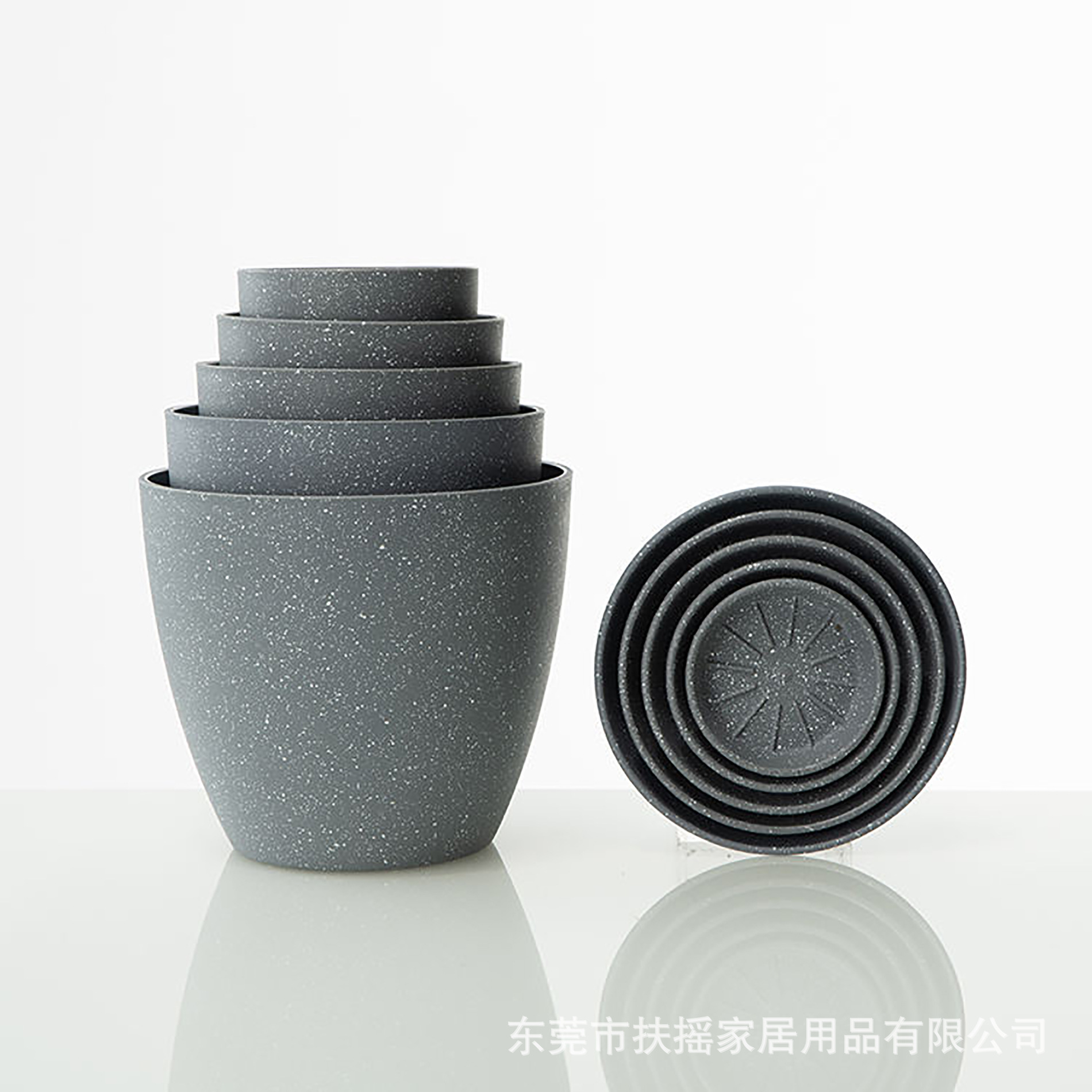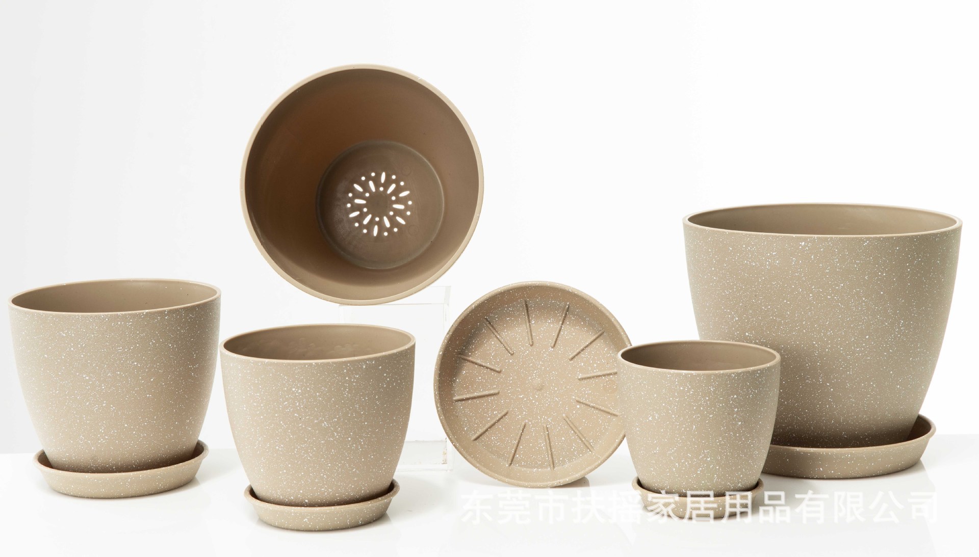 白色喷点效果宽口窄底多尺寸塑料多色花盆可堆叠含托盘室内外通用 1000个