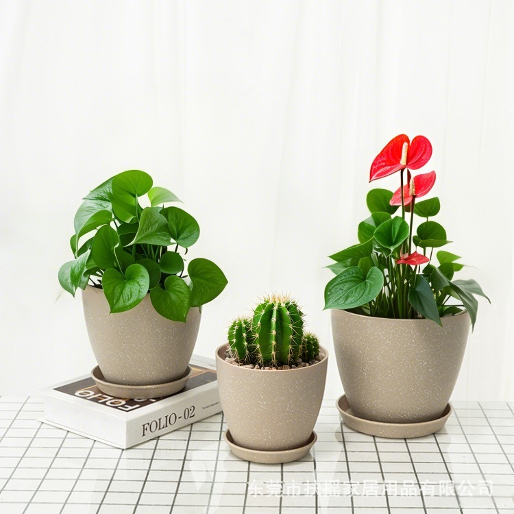 黑白红三色套装6寸7.5寸种植绿萝仙人掌PP花盆台阶盆育苗盆含托盘 1000个