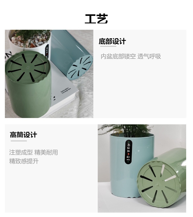 仿陶瓷花盆高筒兰花盆文竹多肉盆栽莫兰迪色系轻奢高级感桌面盆栽 1个