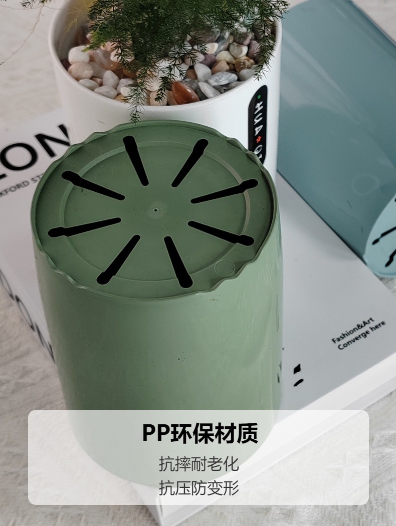 北欧风竖纹懒人花盆自动吸水清香木绿植侧面加水口栀子花吸水花盆 1个