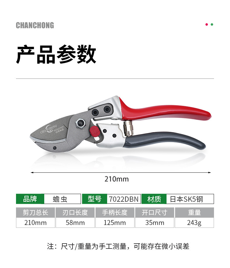 蟾虫7022DBN台湾原装修枝剪园艺剪刀剪果树修枝修剪树枝果树专用 1把