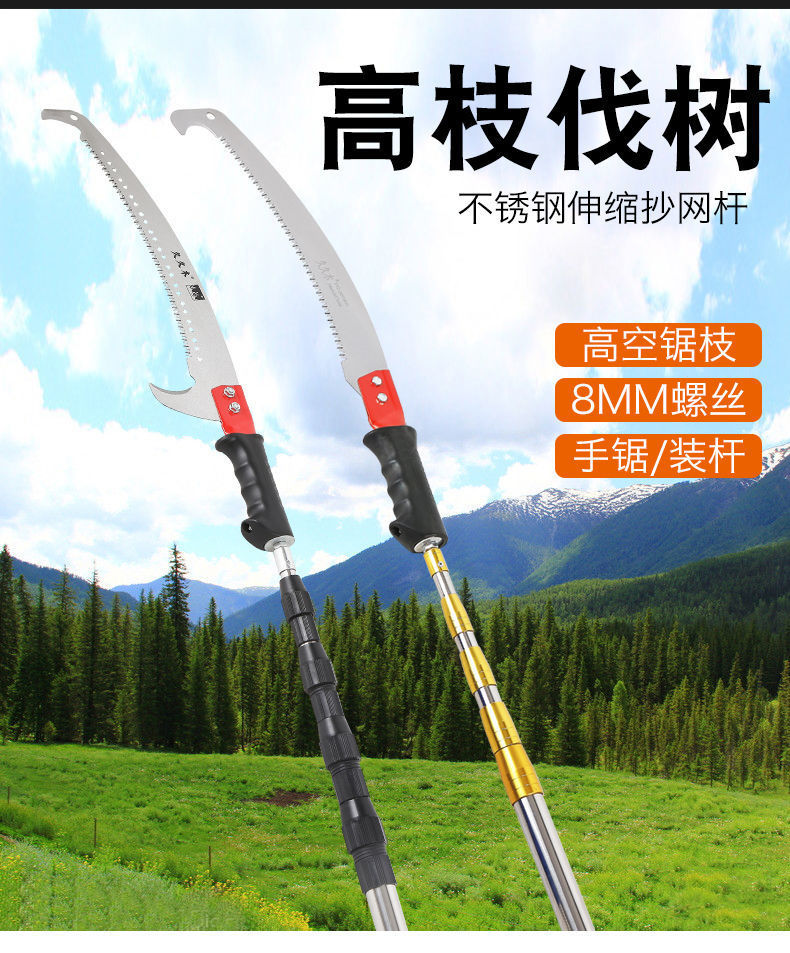 德国品质多功能不锈钢伸缩杆高枝锯园林果树锯子树枝加长杆高空锯 1套