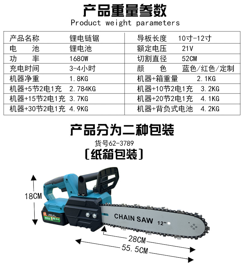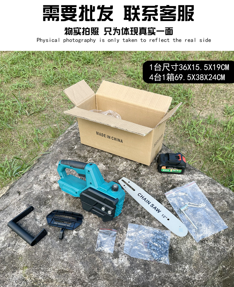 电锯充电式锂电木工手持无线锂电电锯伐木手电链锯大功率便携电锯 1盒