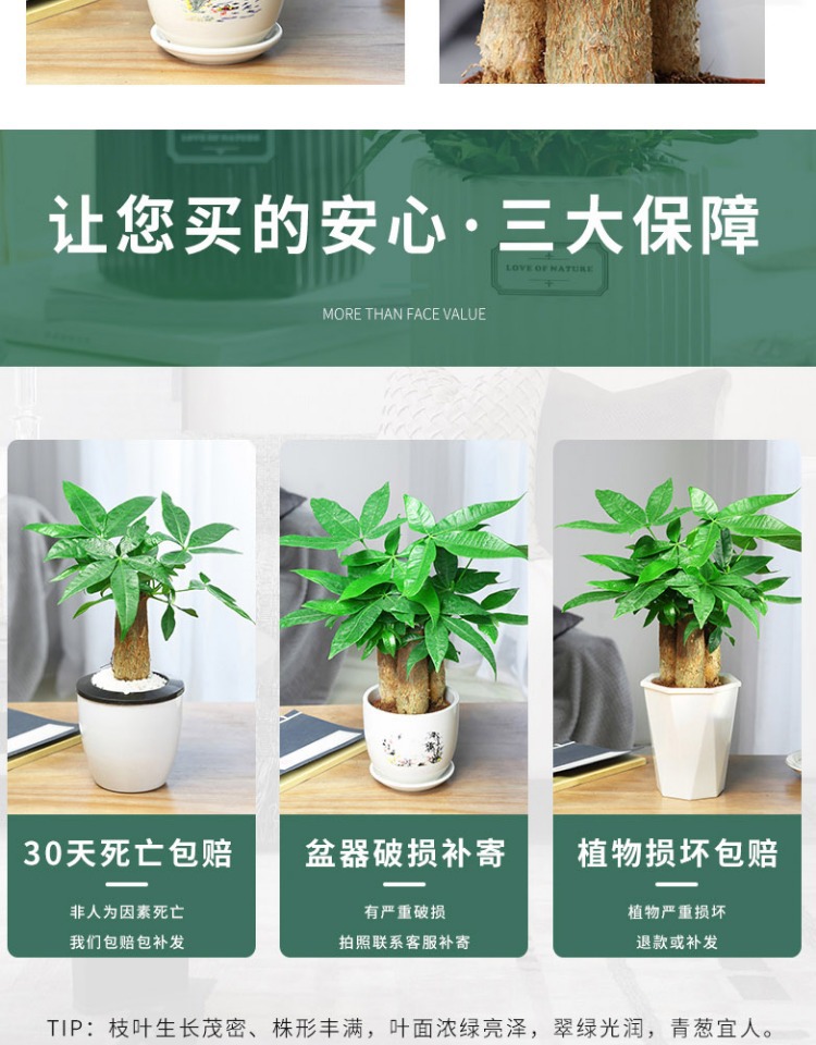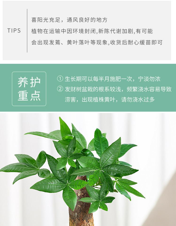 发财树小盆栽大金钱树招财植物室内客厅桌面盆景摆件四季好养花卉 1件