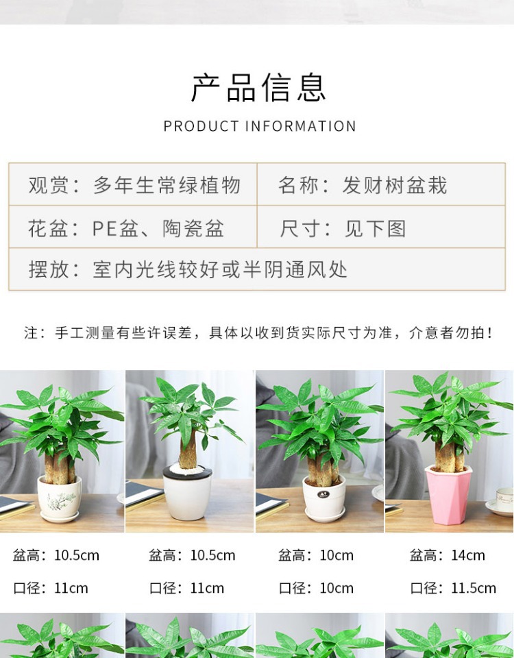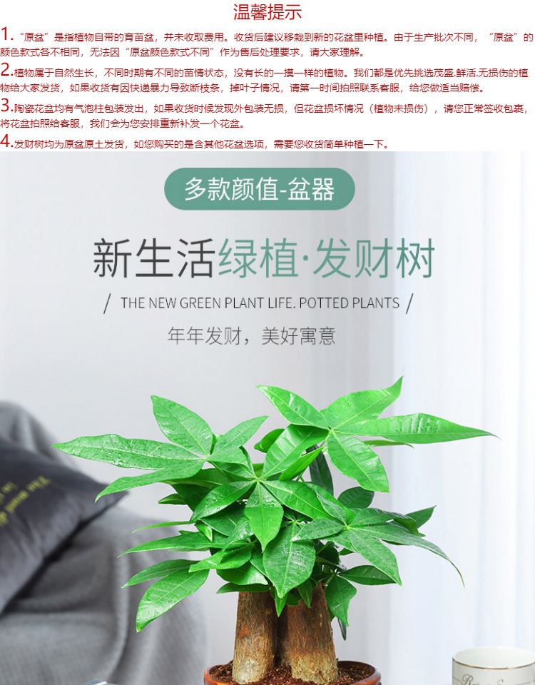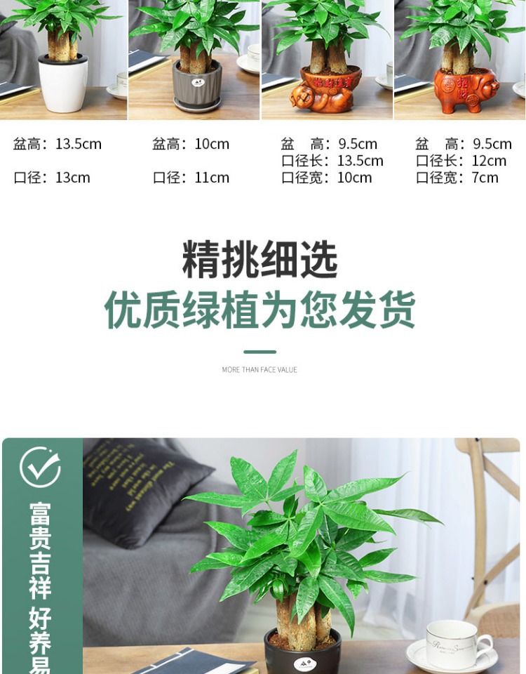 发财树盆栽花卉植物办公室内客厅绿植小盆景四季常青易活水培好养 1件