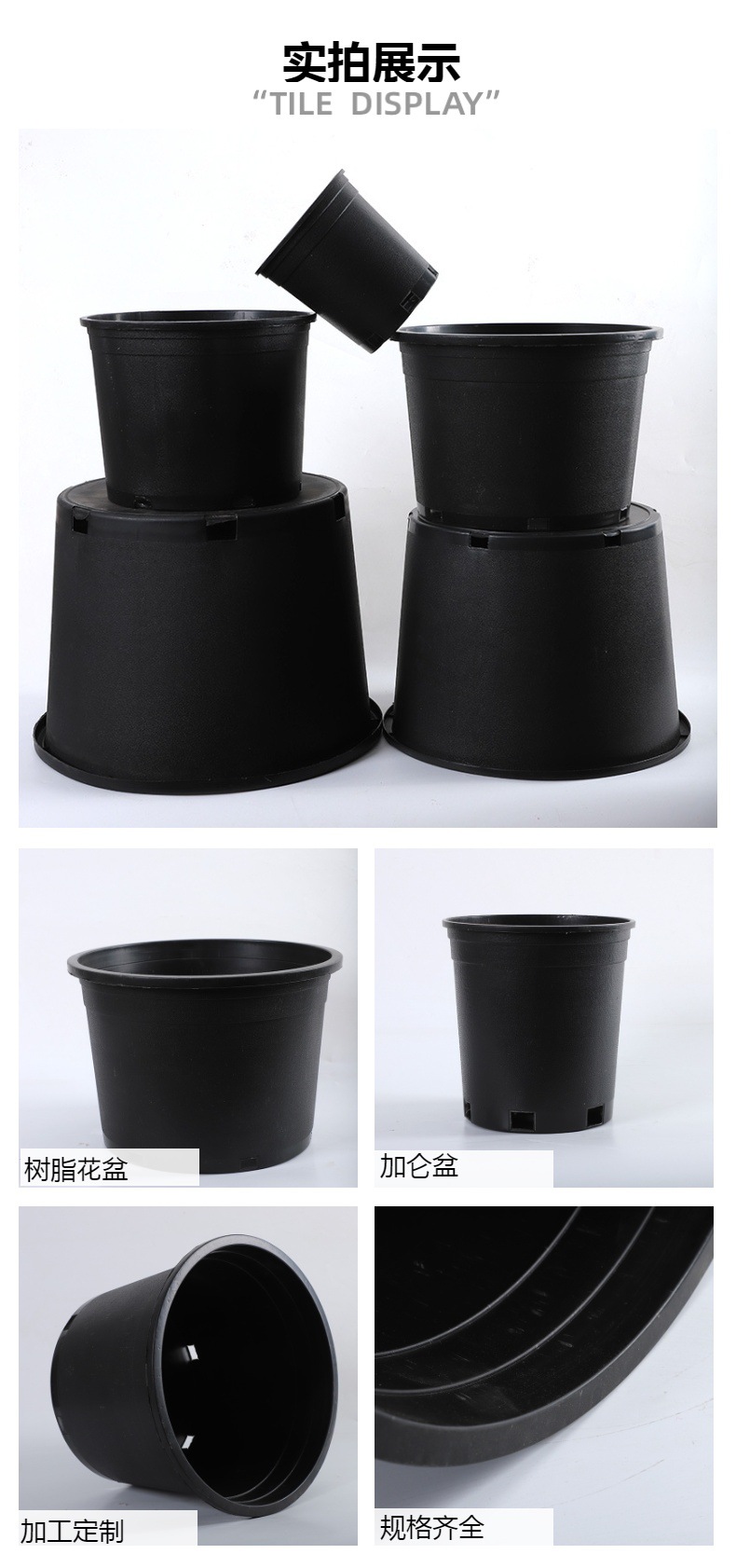 厂家供应黑色加仑盆加厚塑料花盆矮胖加仑花盆阳台盆栽绿萝育苗盆 10个