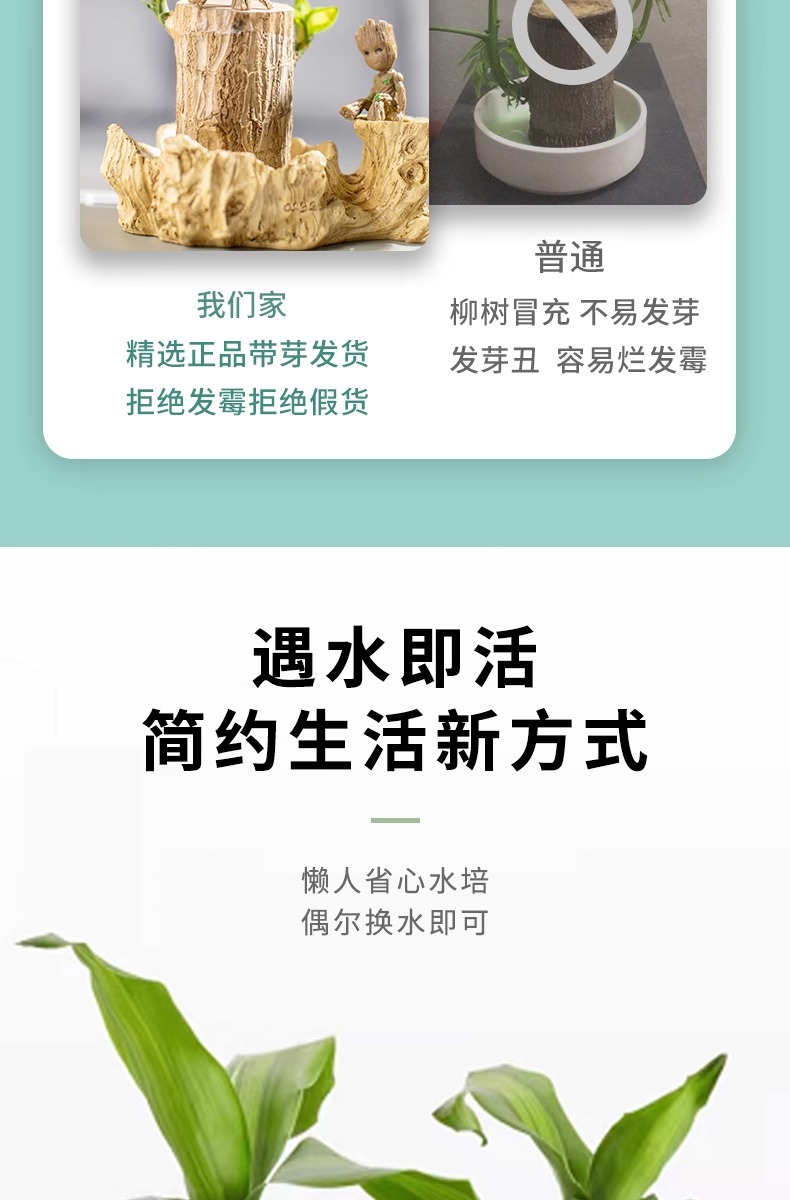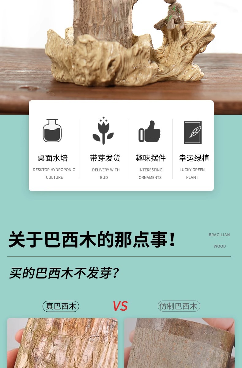 巴西木幸运木开花水养绿植格鲁特室内盆栽老桩带小树人芽水培植物 1个