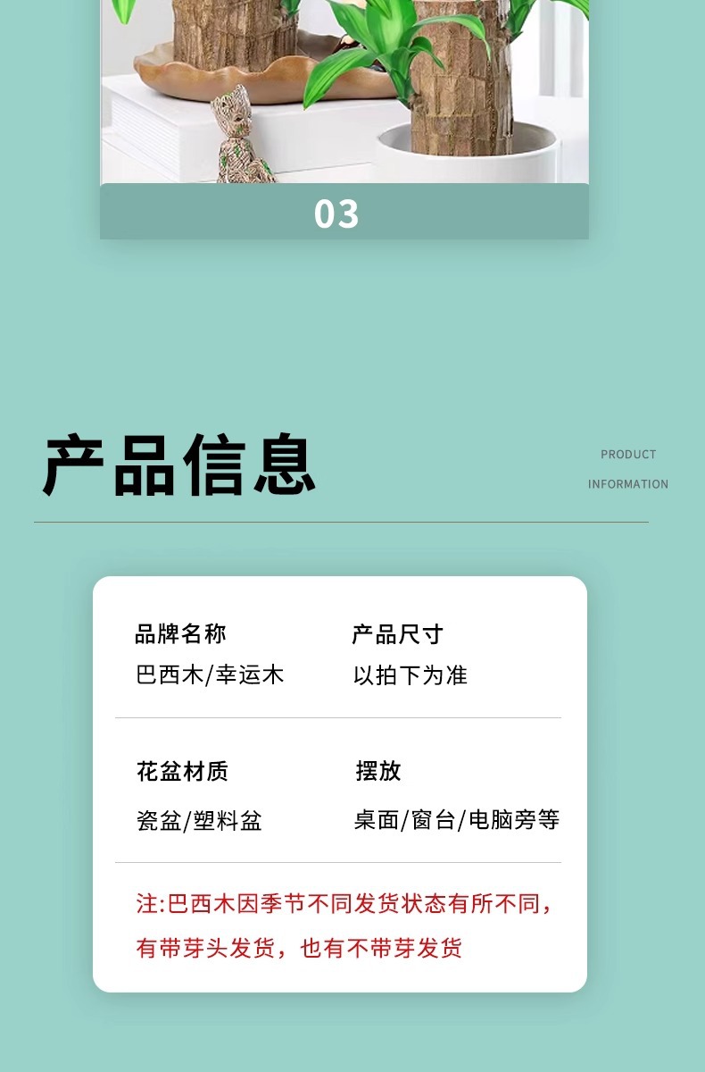 巴西木水培养幸运木带芽开花卉室内桌面办公室绿植盆栽客厅办公桌 1个