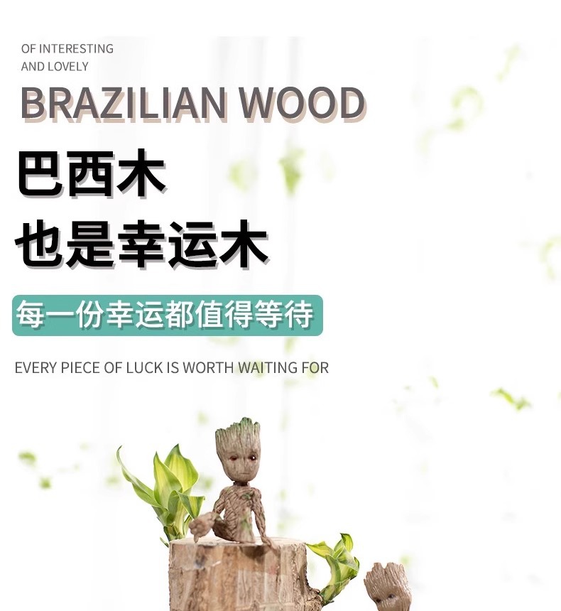 巴西木可开花水养幸运木格鲁特四季水培室内好养花卉盆桌面盆栽 1个