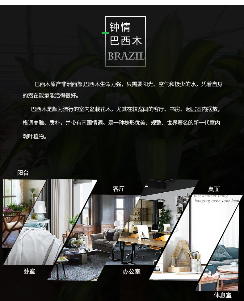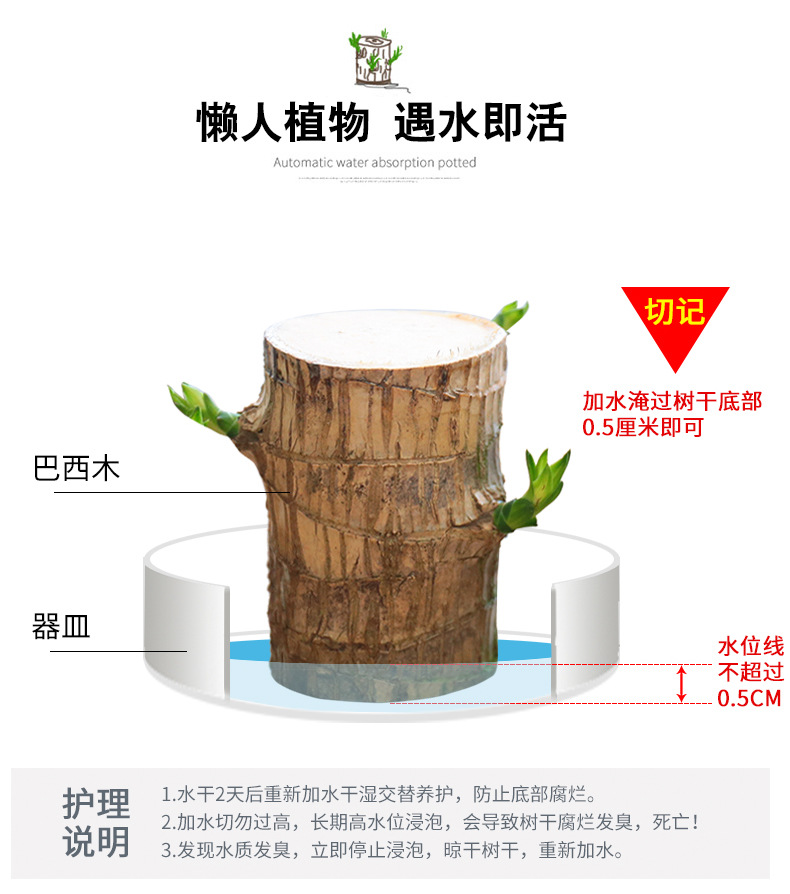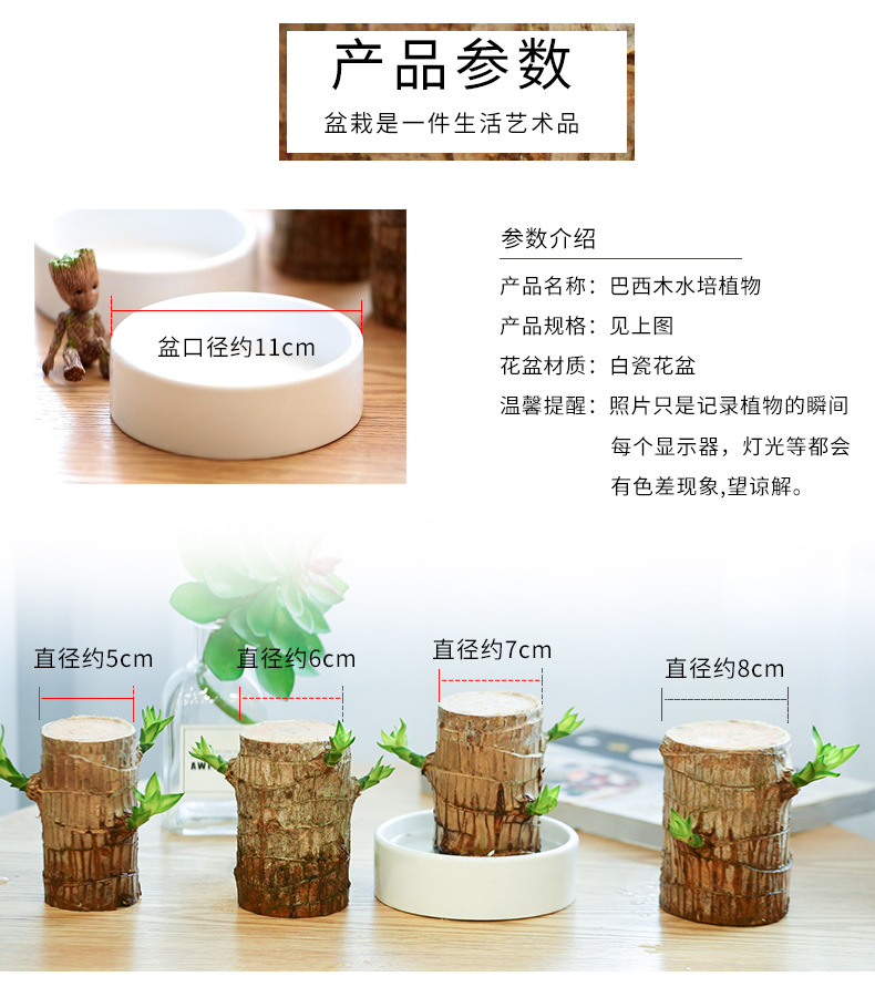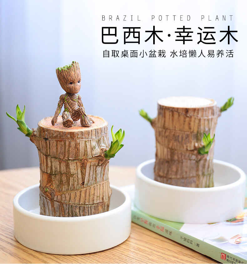 巴西木可开花水养幸运木格鲁特四季水培室内好养花卉盆桌面盆栽 1个