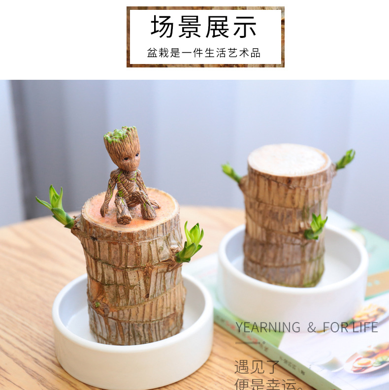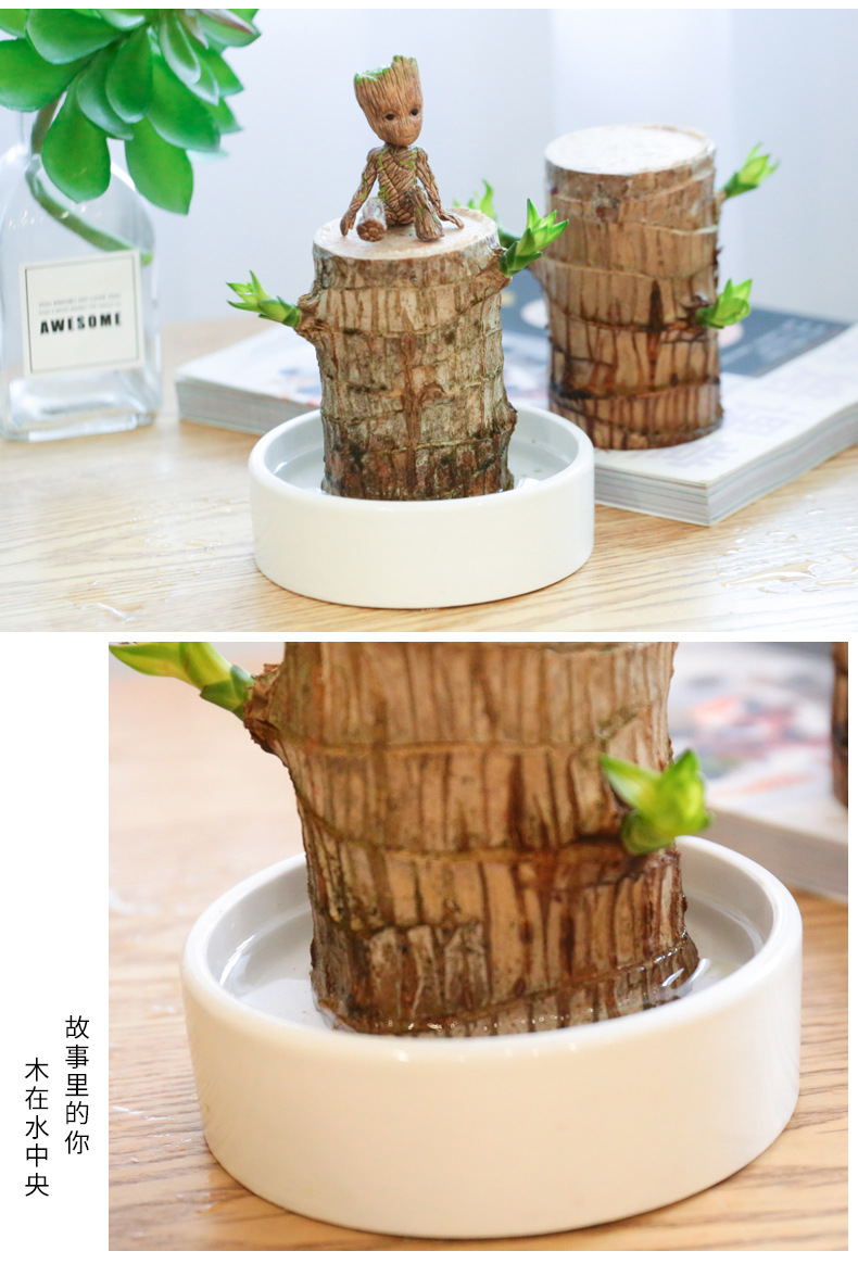 巴西木幸运木开花水养绿植格鲁特室内盆栽老桩带小树人芽水培植物 1个
