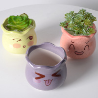 陶瓷花盆跨境卡通可爱仙人掌多肉花盆室内阳台桌面摆件花盆陶瓷 6件