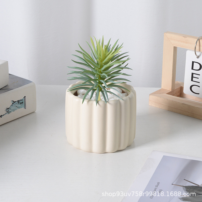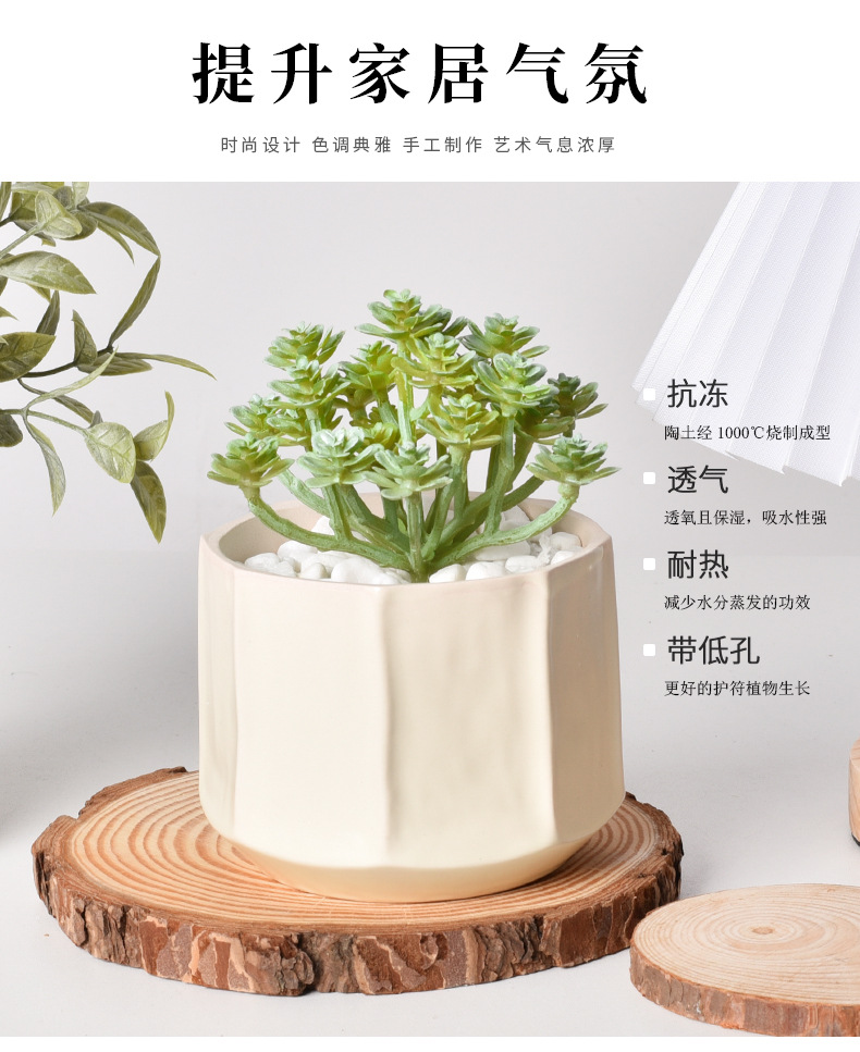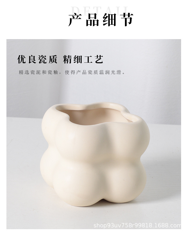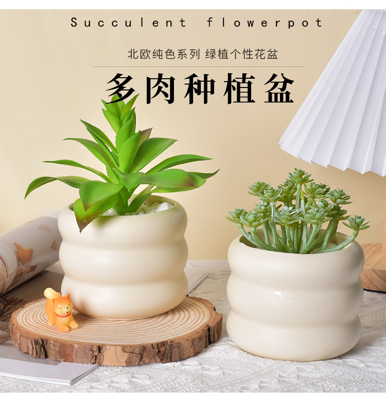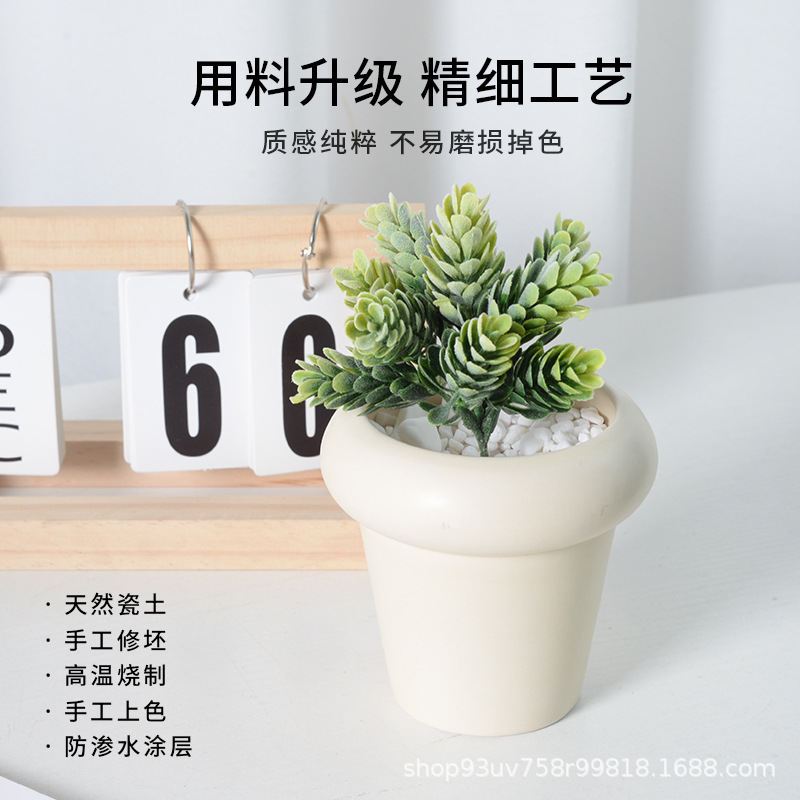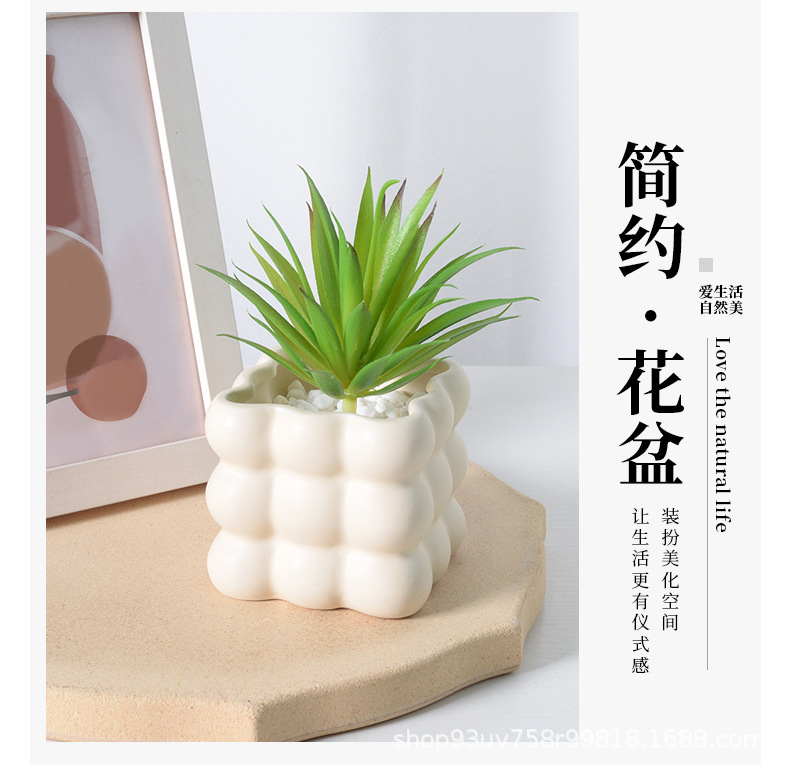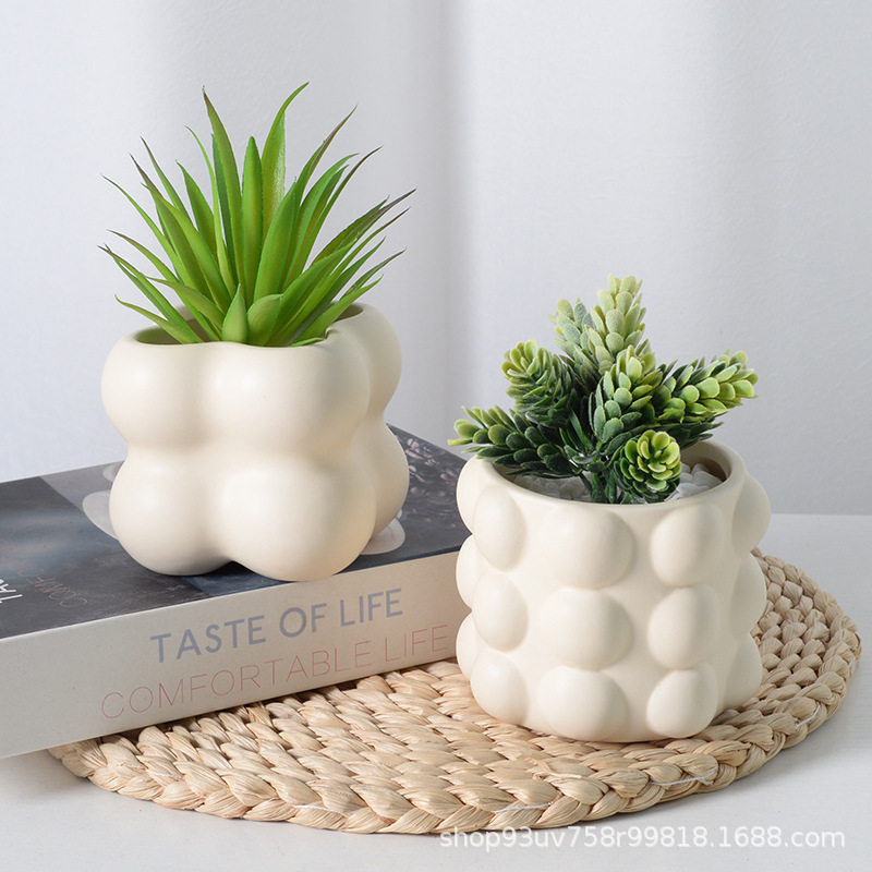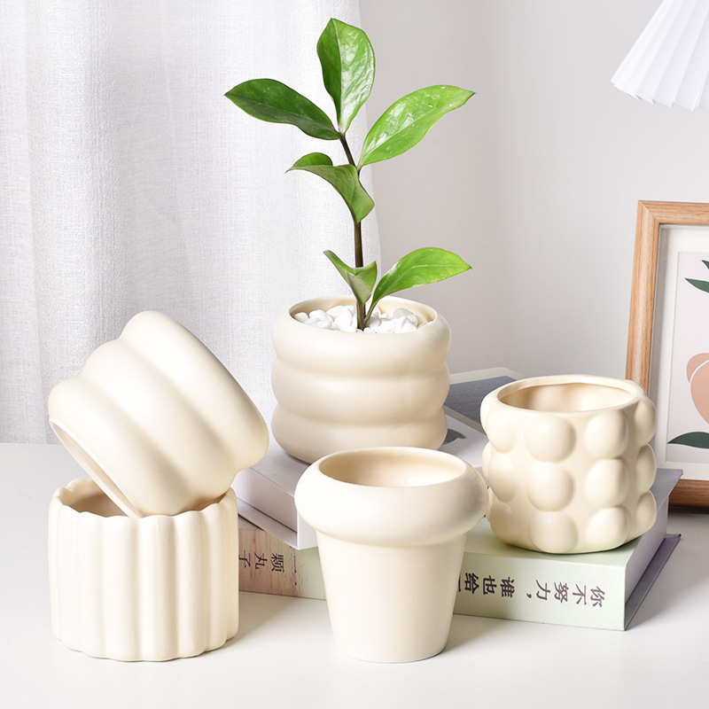 陶瓷花盆INS风奶油轻奢高级感创意简约家用家居桌面摆件装饰花盆 6个
