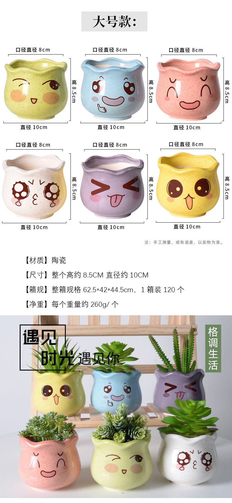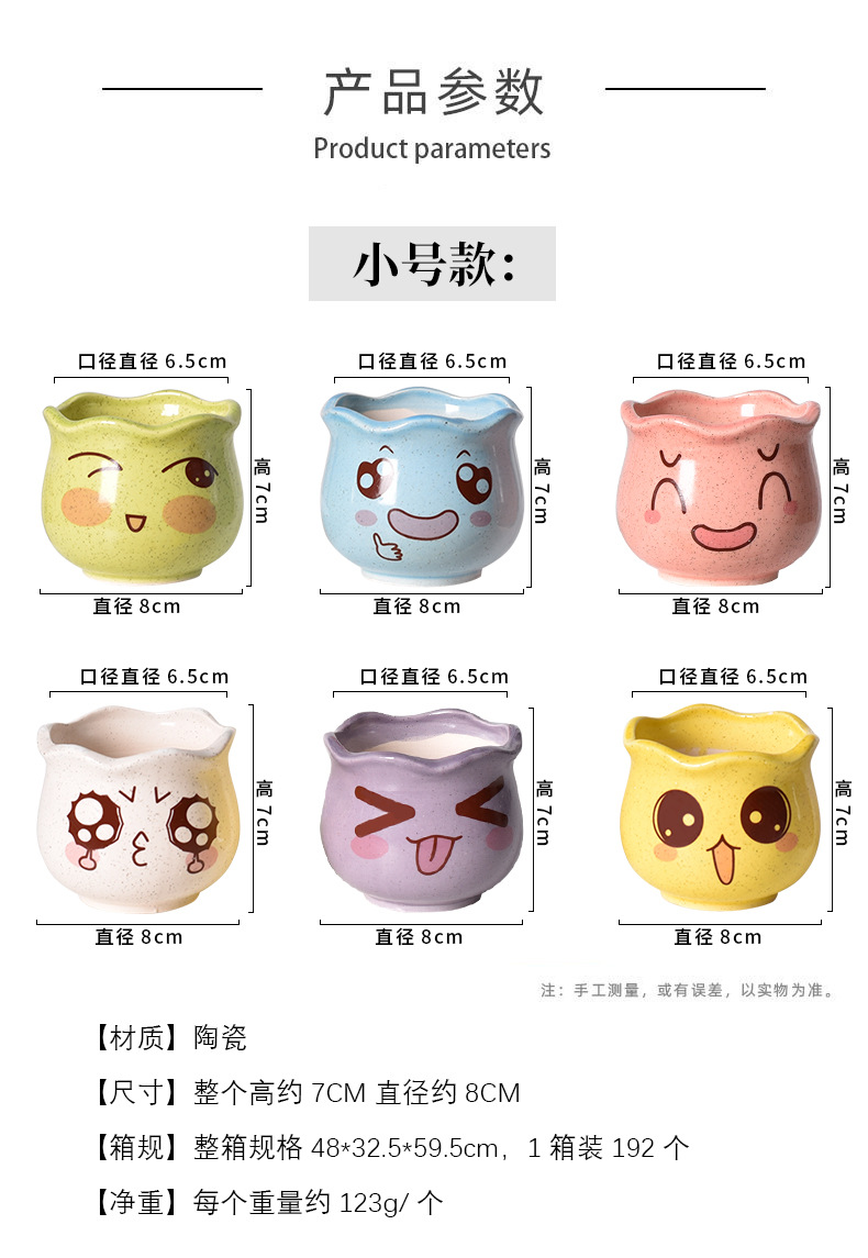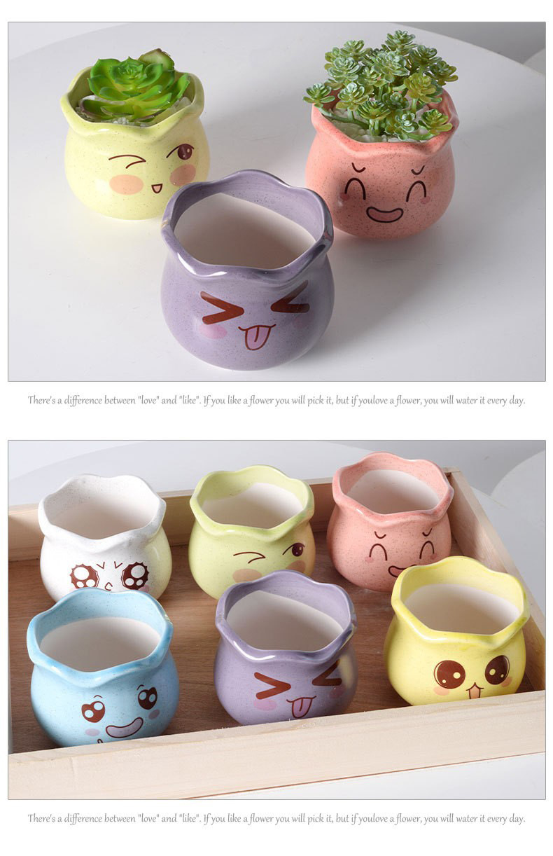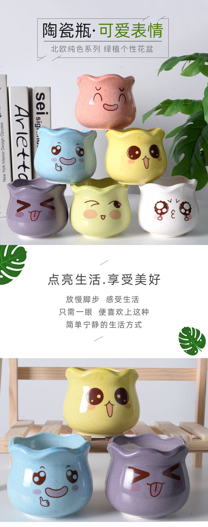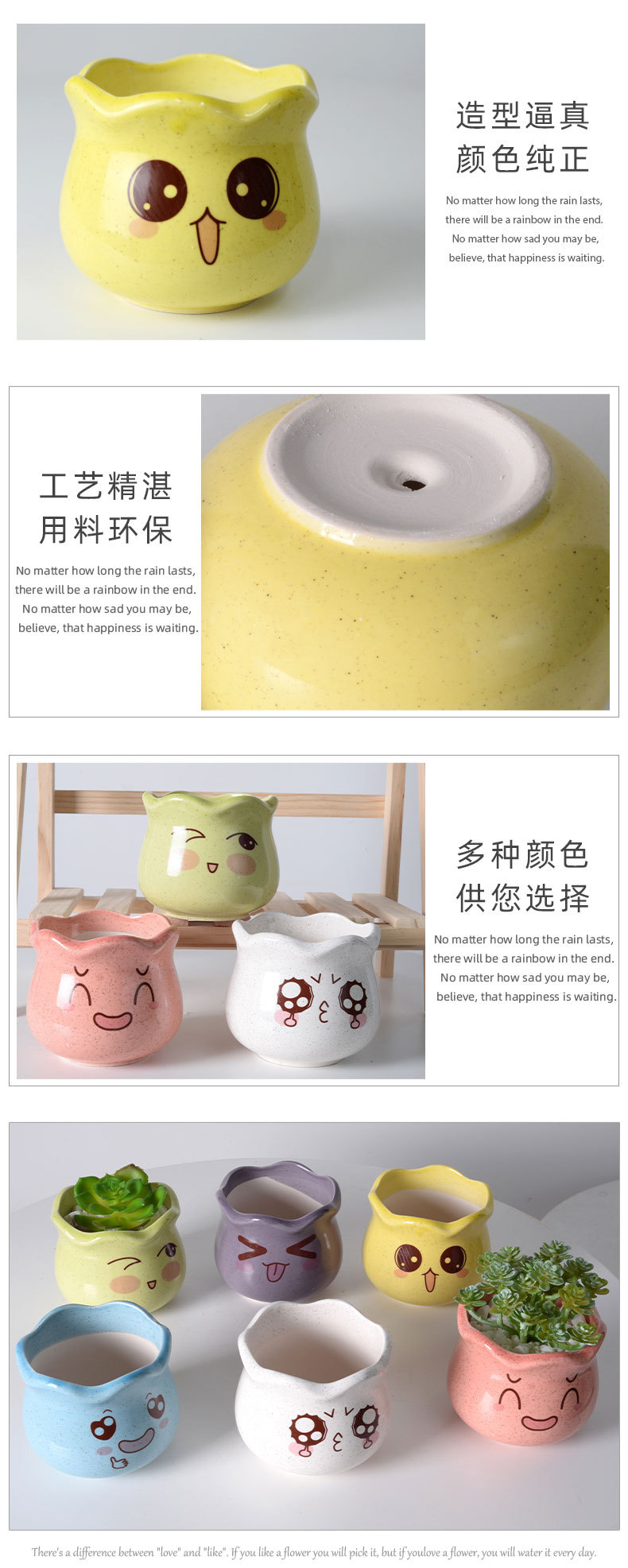 陶瓷花盆跨境卡通可爱仙人掌多肉花盆室内阳台桌面摆件花盆陶瓷 6件