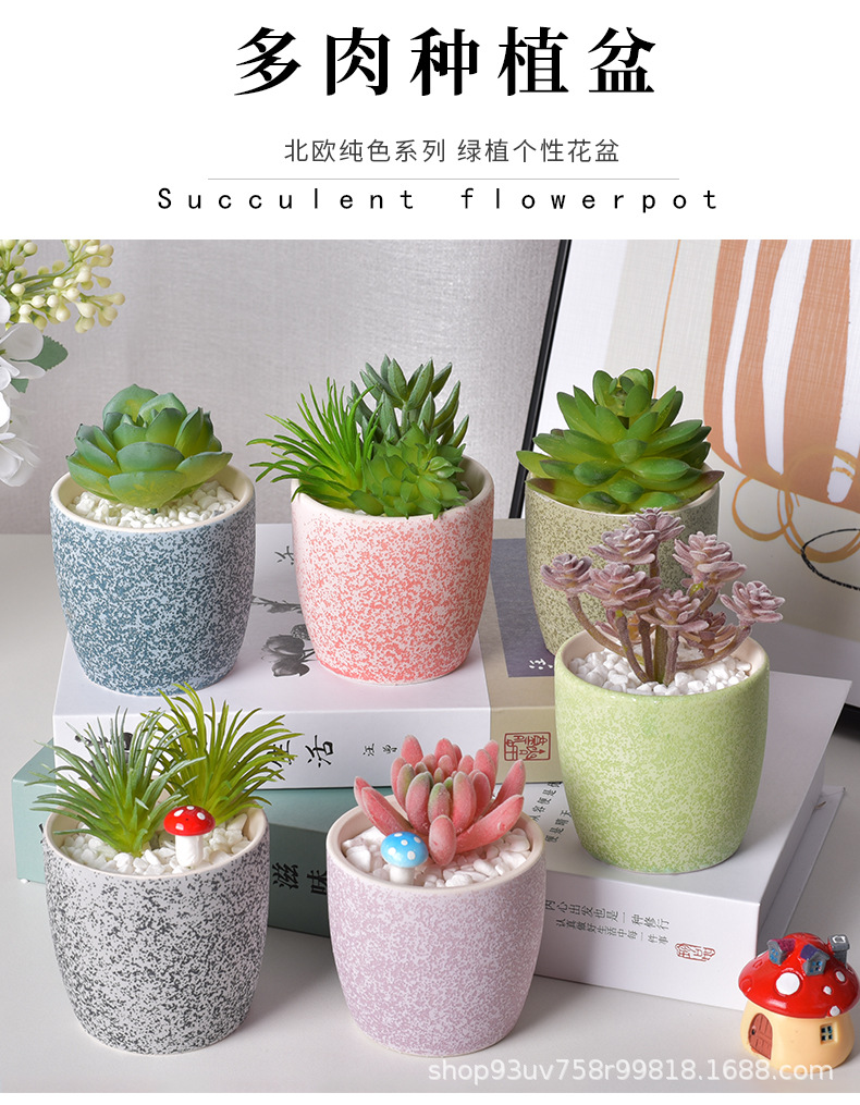 陶瓷花盆马卡龙色多肉摆件北欧简约创意绿植盆栽阳台家用景徳镇 6件