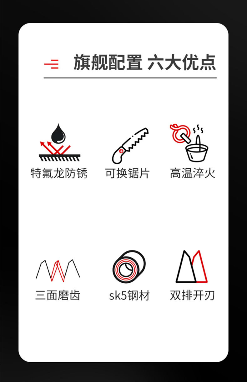 新型多功能木工折叠手工锯 防生锈快速家用户外细齿手拉锯木工锯 2把