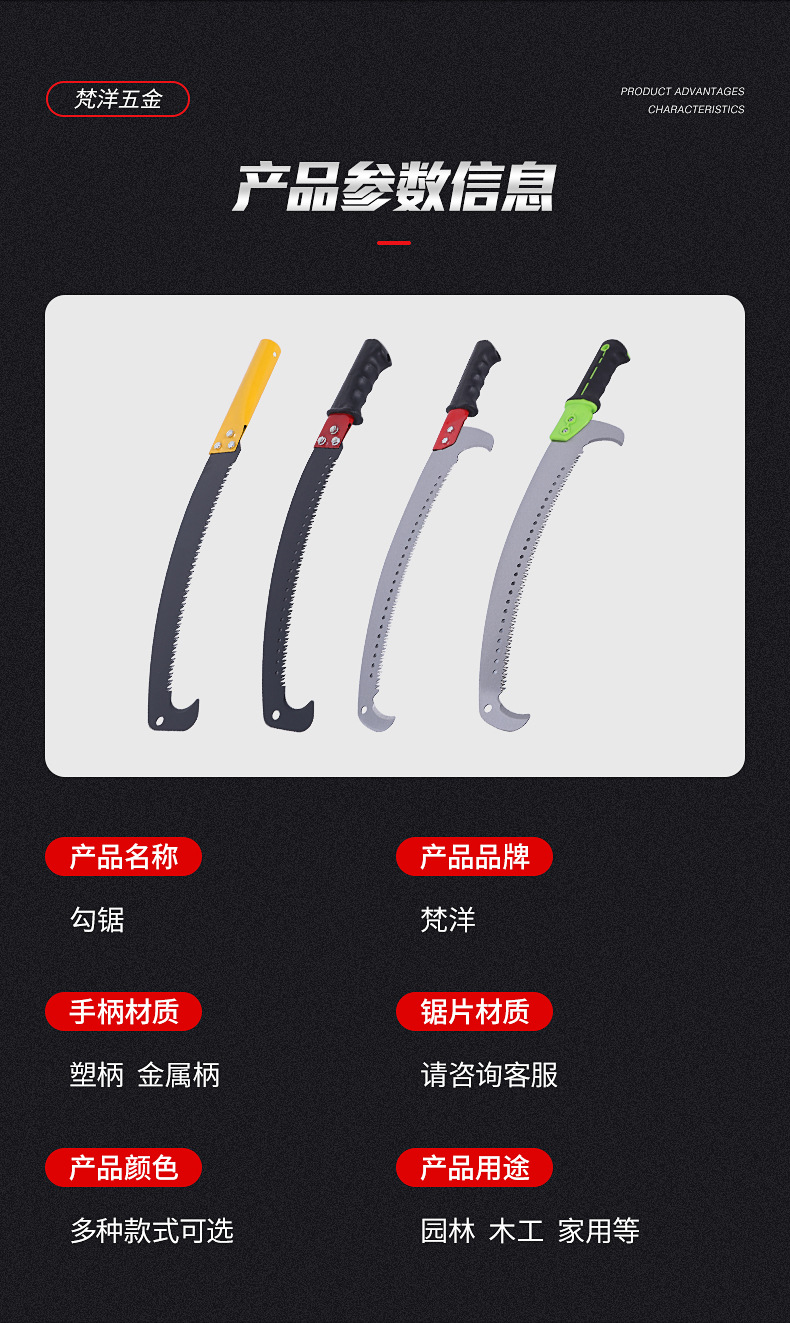 双钩锯高枝锯子园艺修枝勾锯伐木高空锯三面磨齿园林单钩锯子批发 2把
