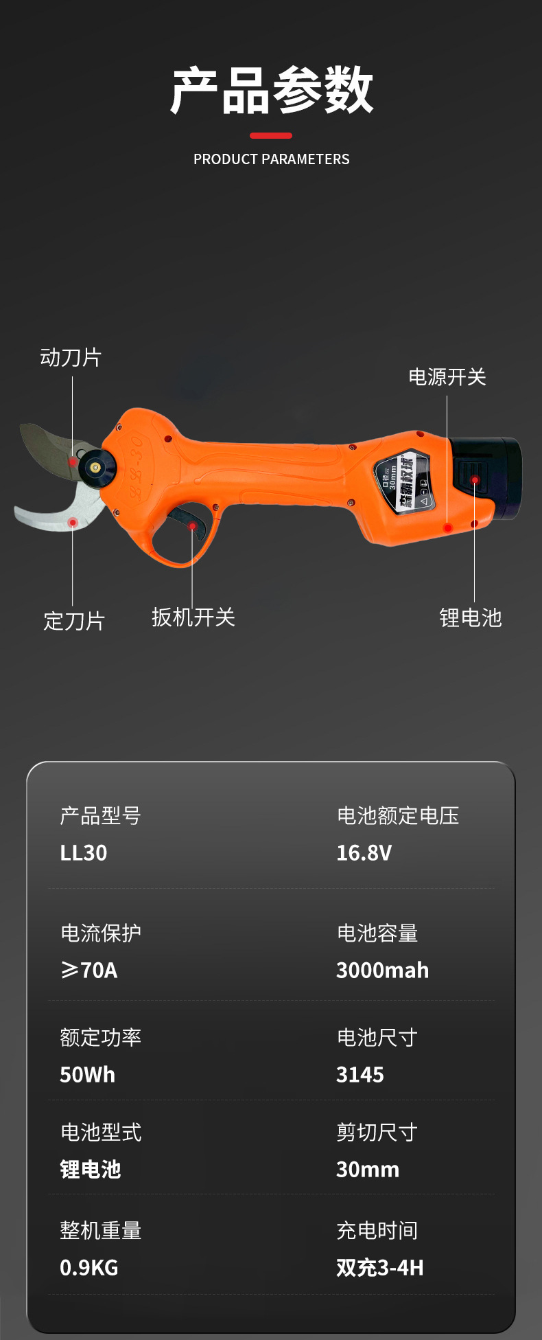 森霸权球3.0直插反剪电动修枝剪花枝剪锂电池电动园林高枝粗枝剪 1台
