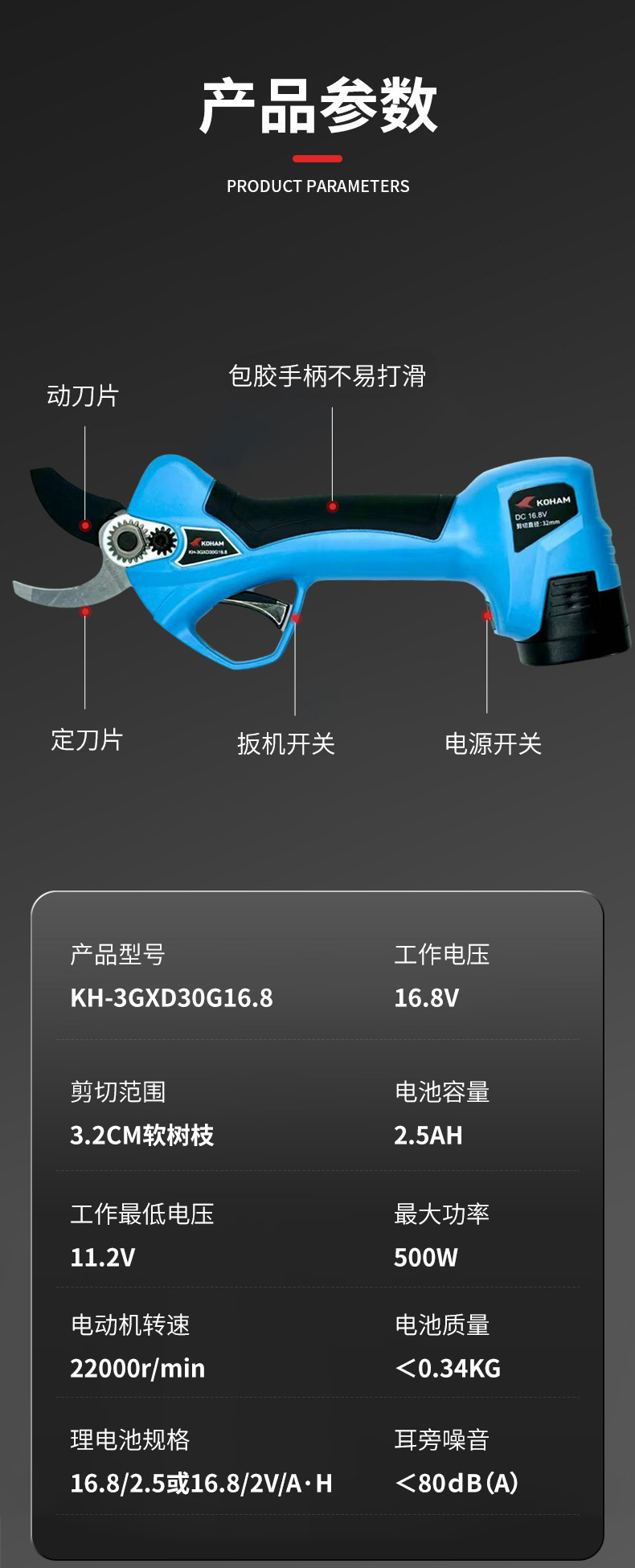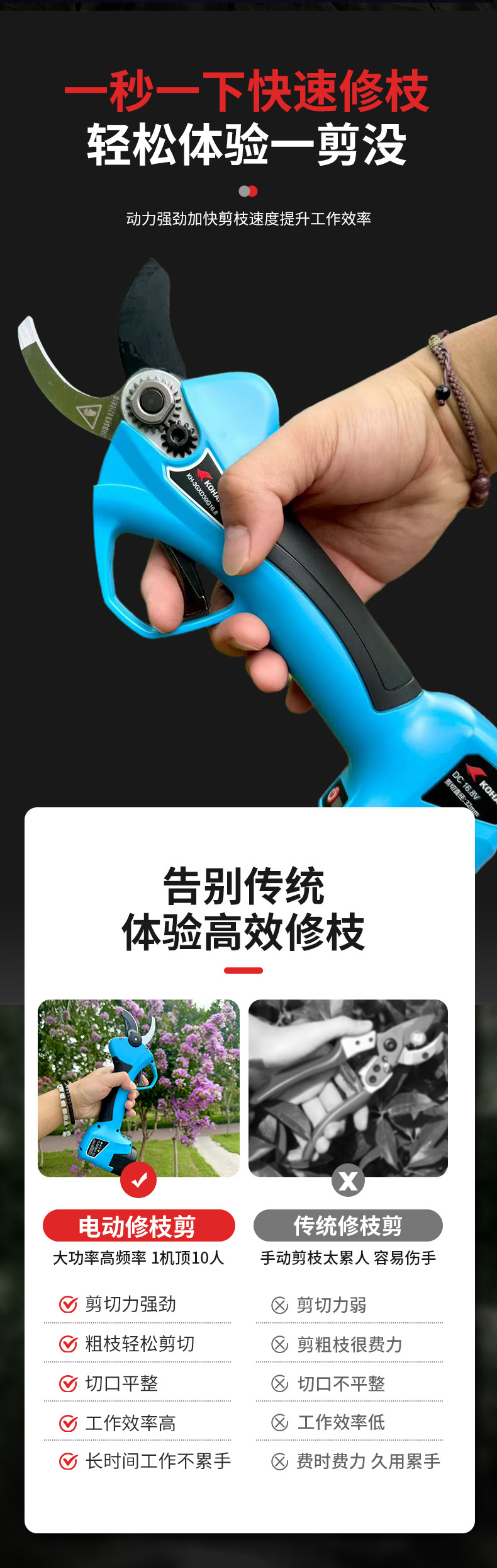 厂家批发电动电剪花枝剪锂电池无线电动园林剪强力电动高枝粗枝剪 1台