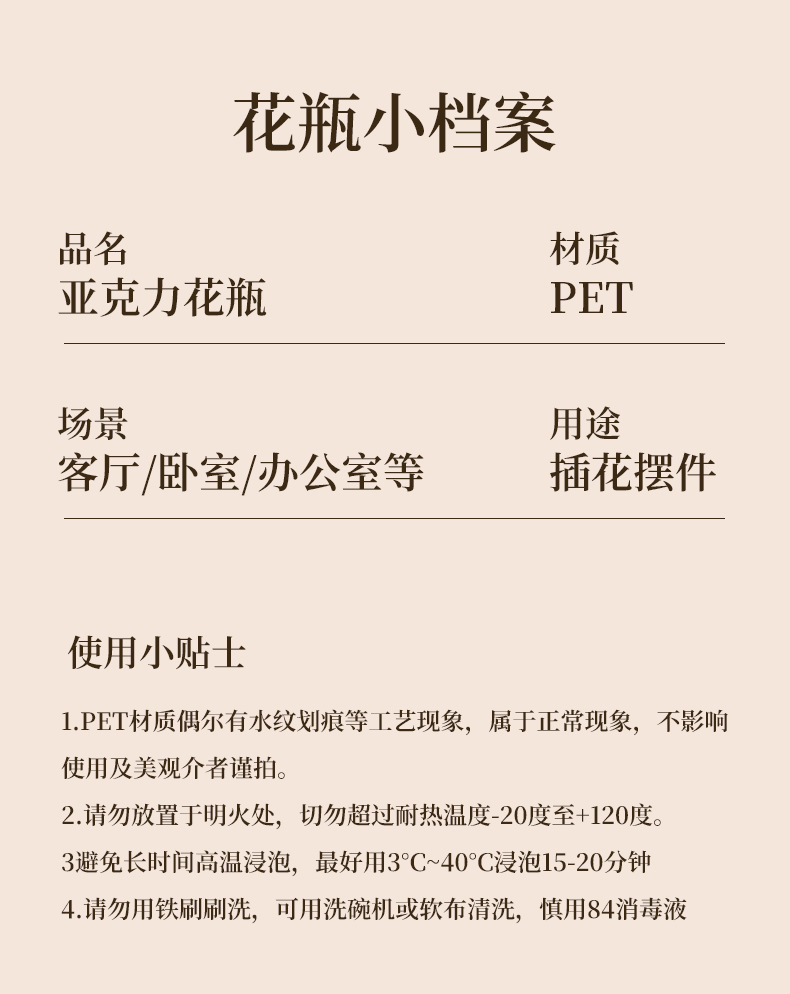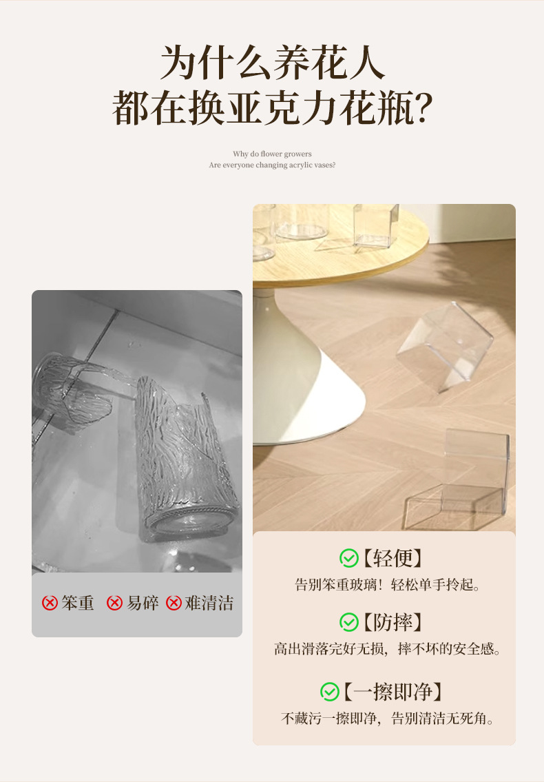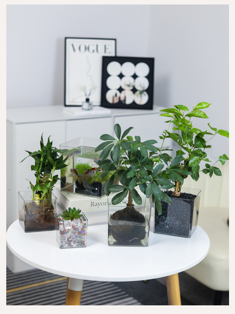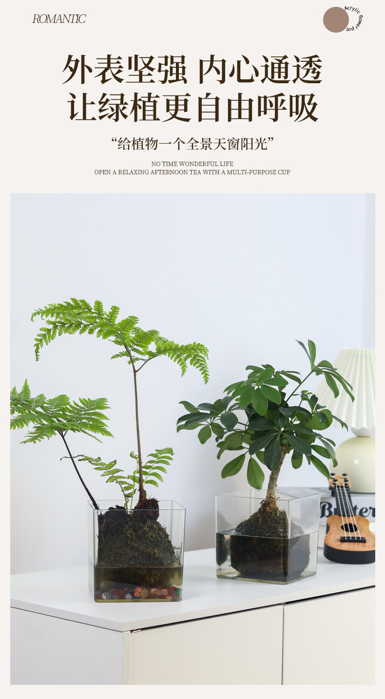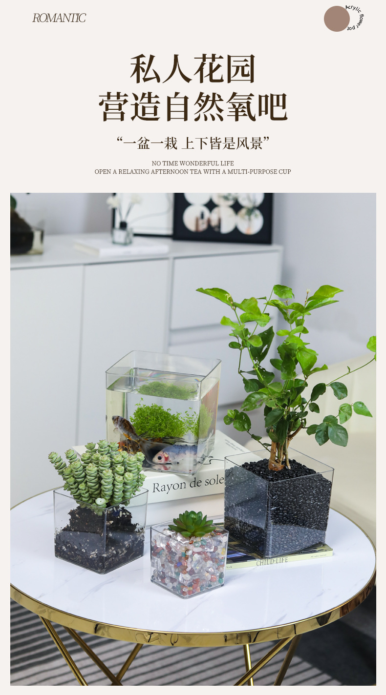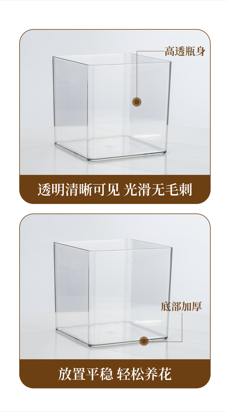 亚克力方形防摔透明直筒款圆形花瓶多肉仙人掌花盆客厅水培绿植皿 1个
