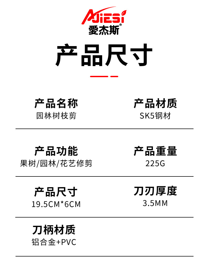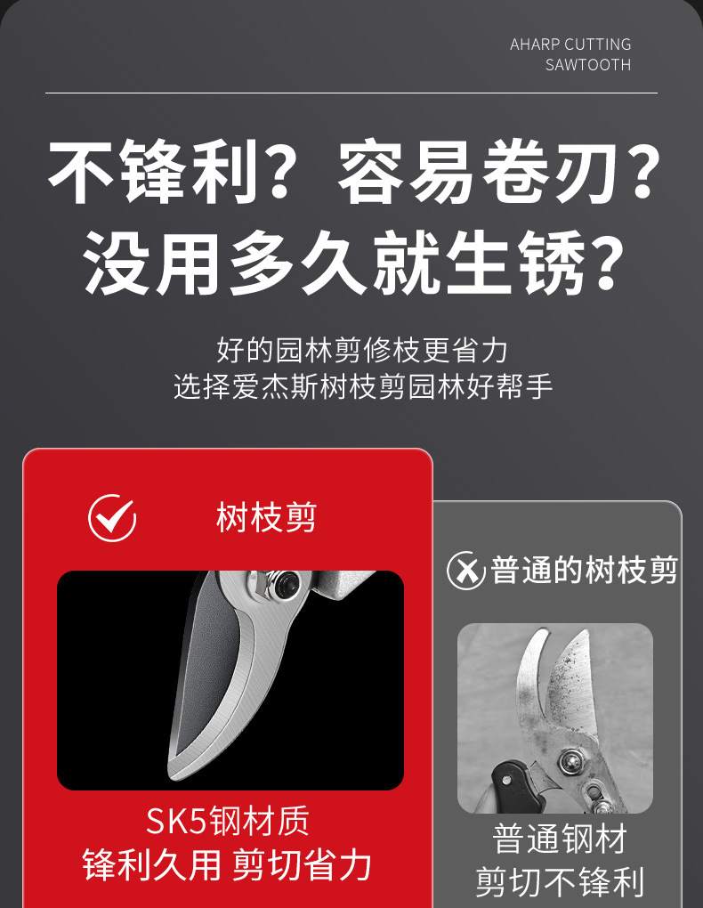 修枝剪SK5钢专业园林果树粗枝剪刀批发家用树枝剪强力修 枝剪刀 1把