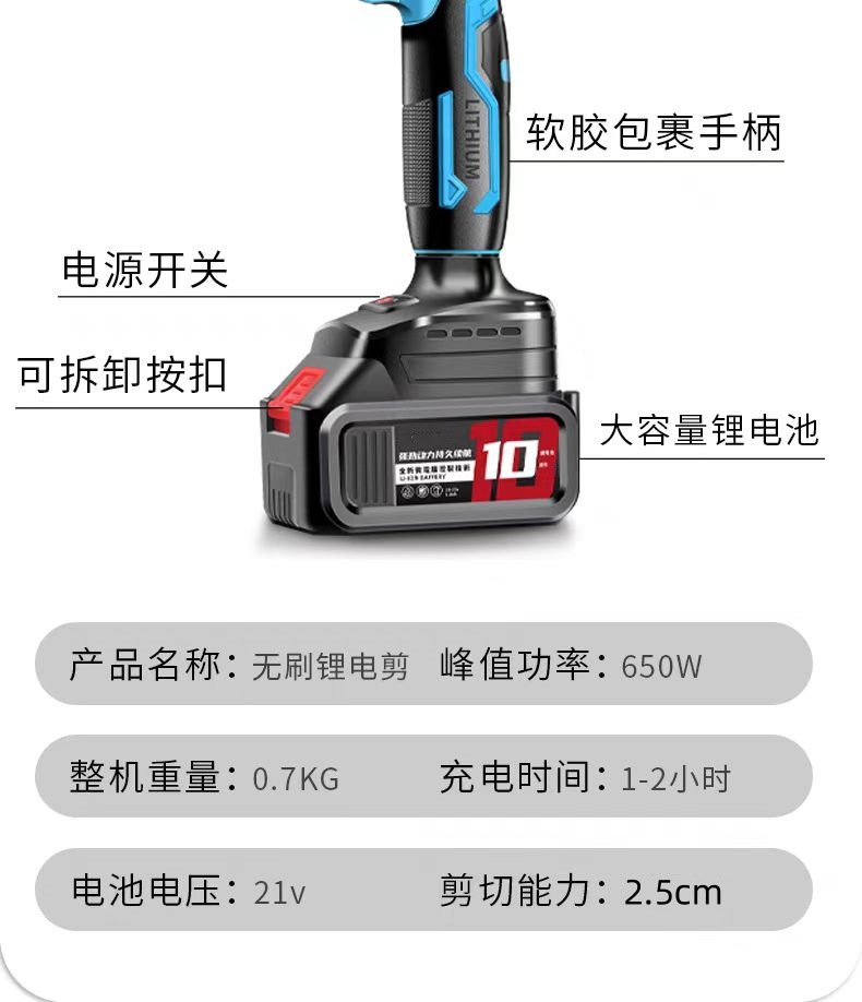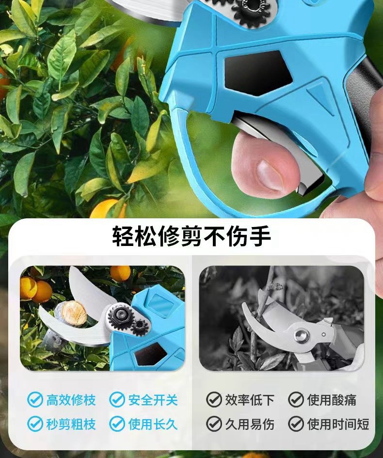 家用电动修枝剪便携式锂电长续航树枝剪果树园艺粗枝剪刀园林工具 1套
