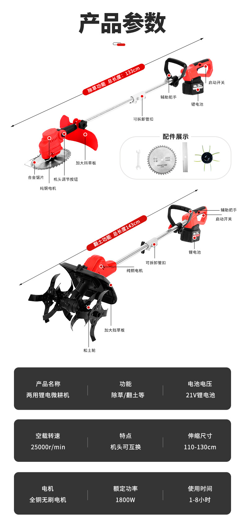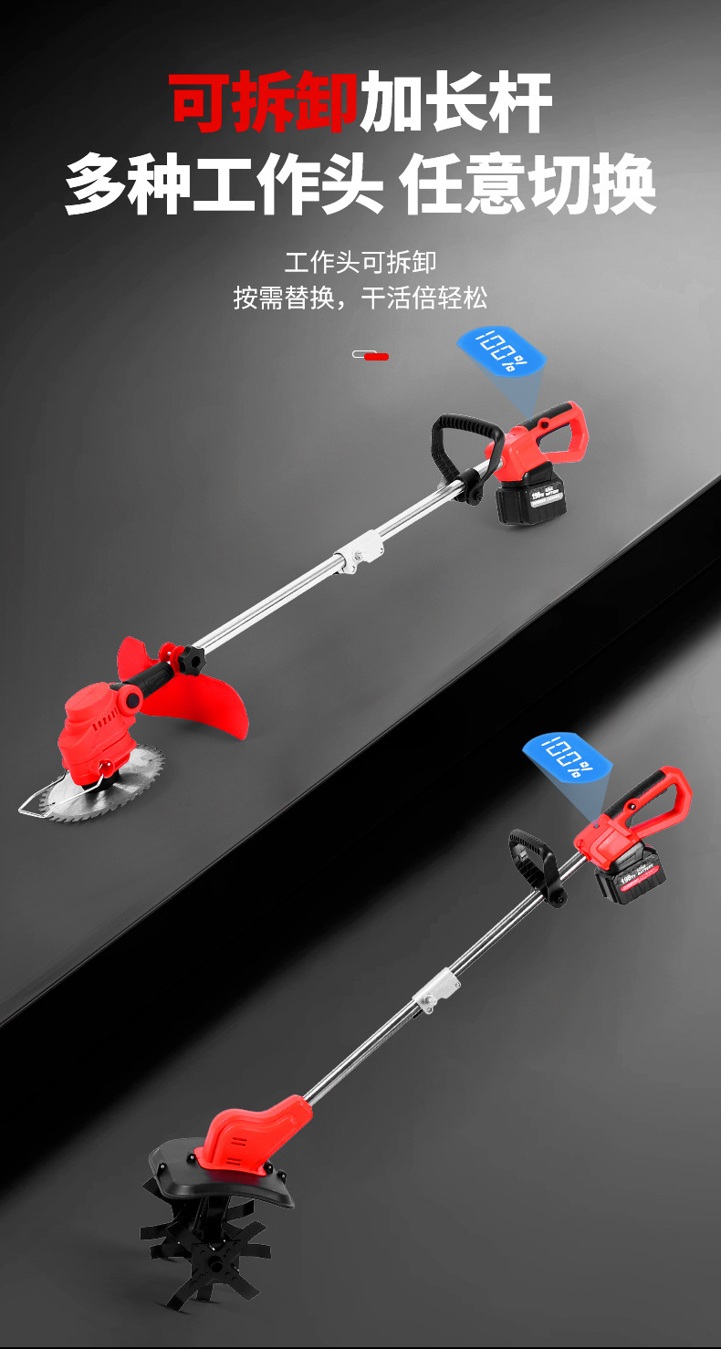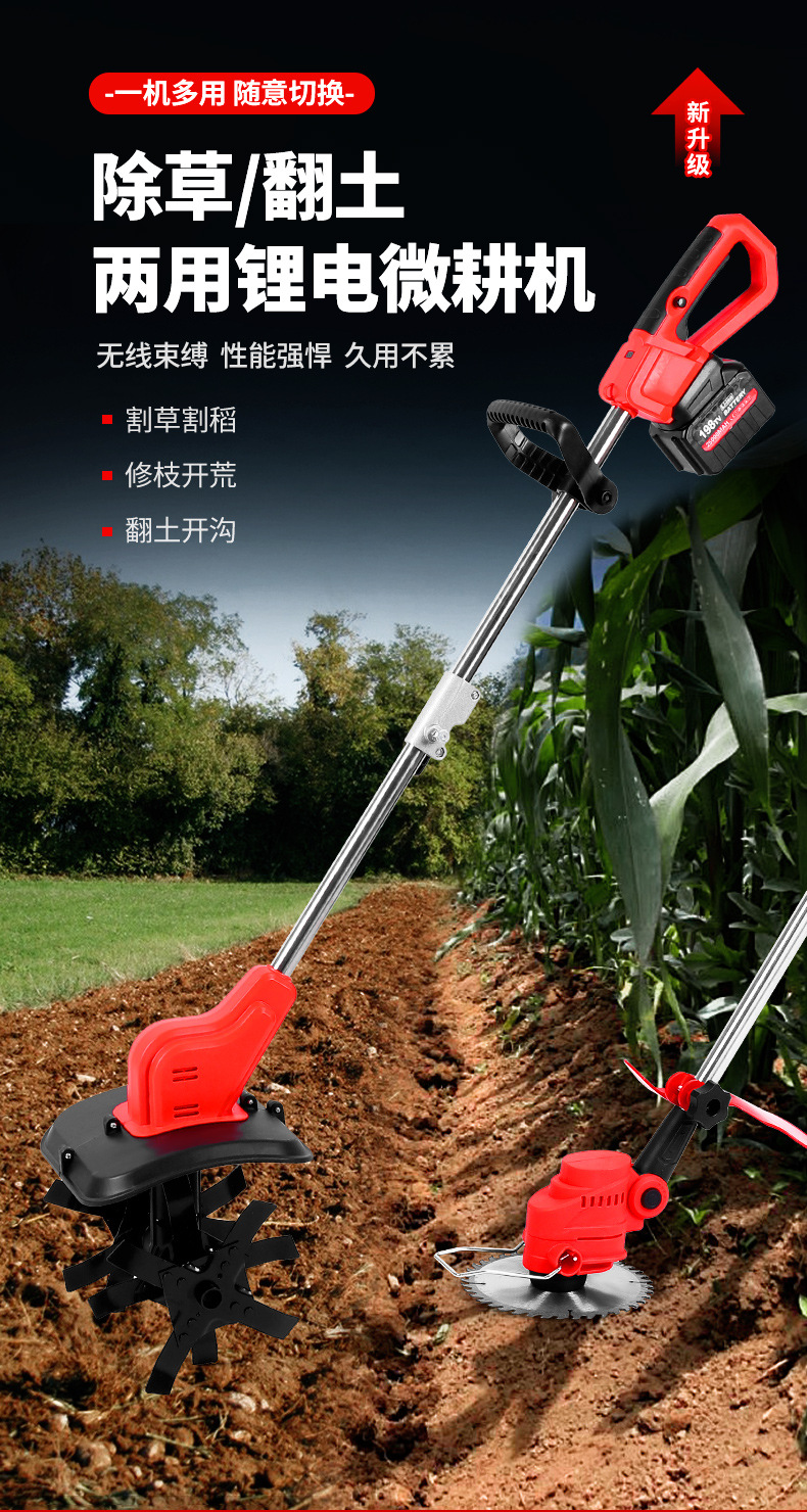 跨境割草机小型农用松土微耕机旋耕机除草锂电草坪修剪机翻土机 1个
