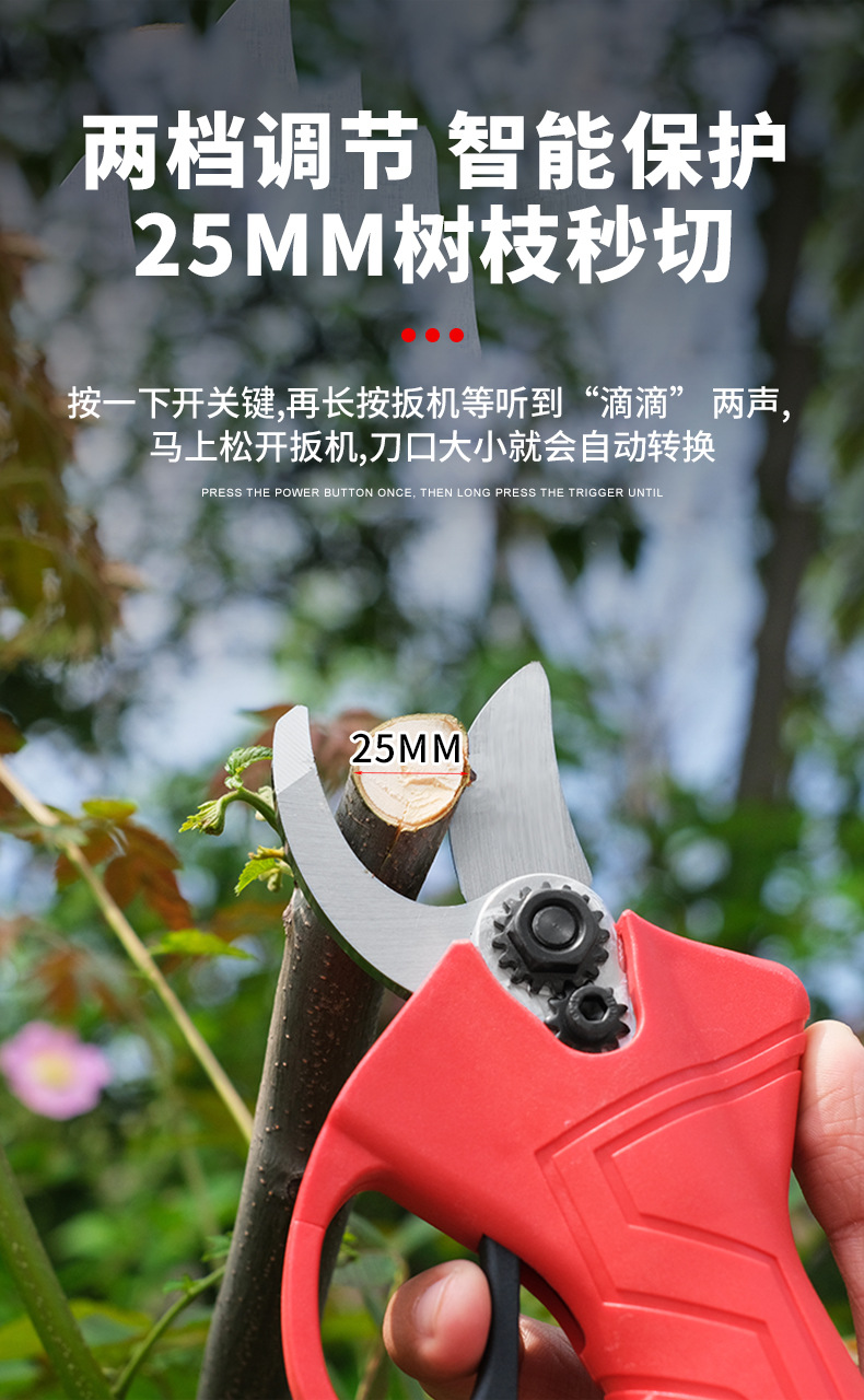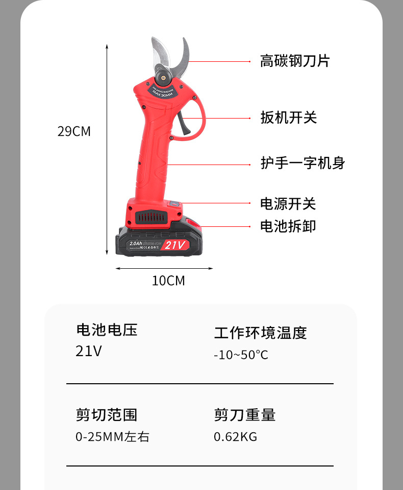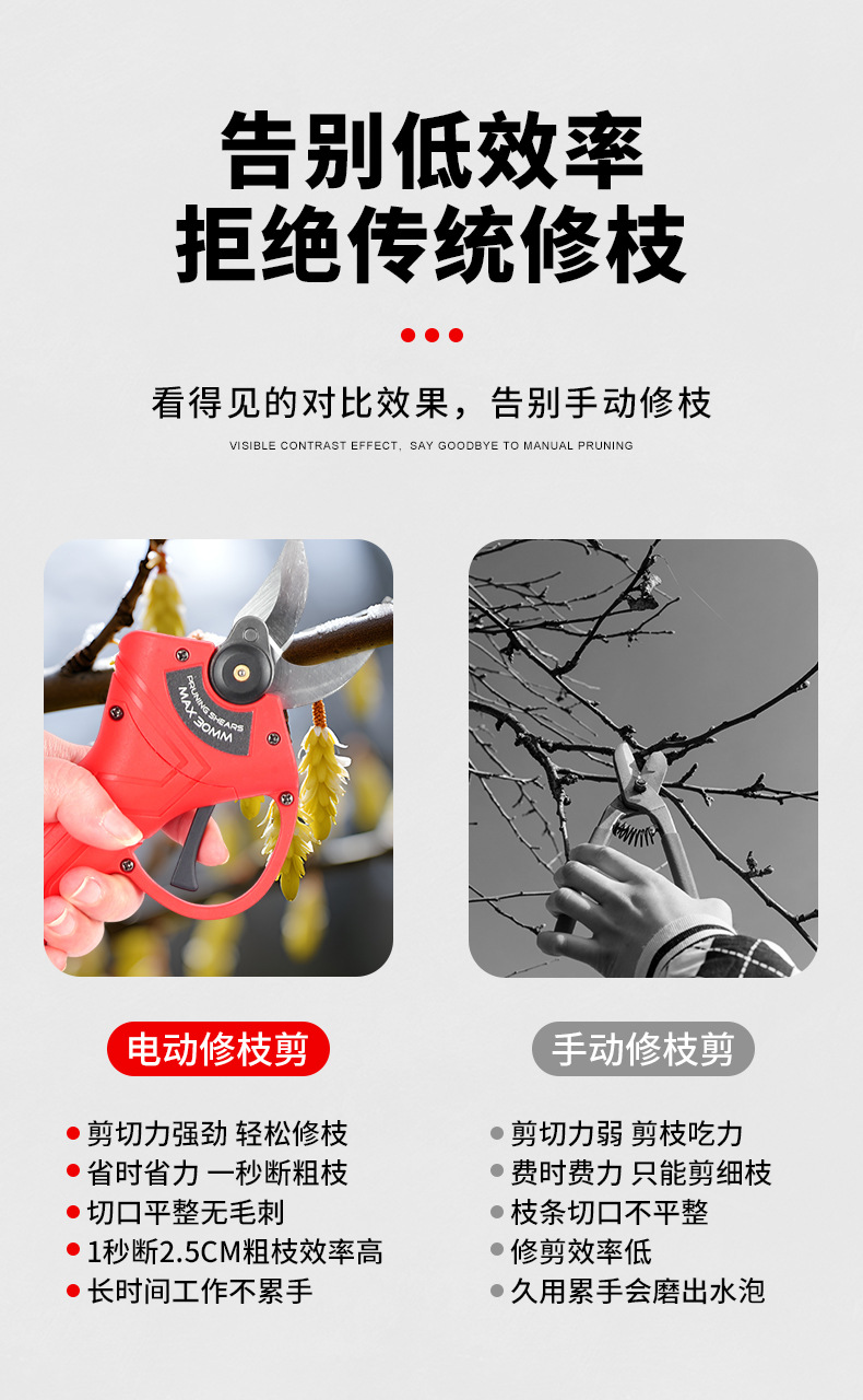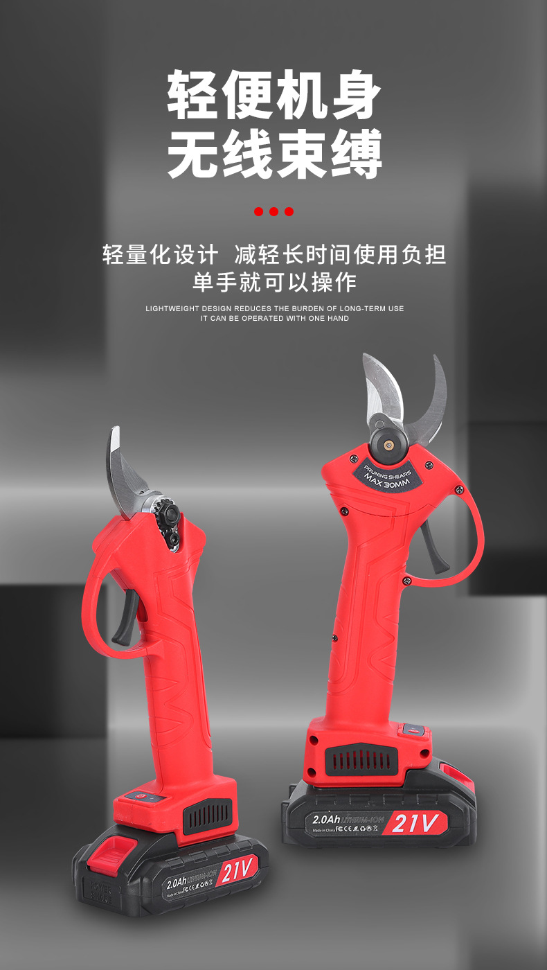 跨境2.0无线锂电修枝剪充电式果树电剪刀园林修剪树枝电动剪刀 1件